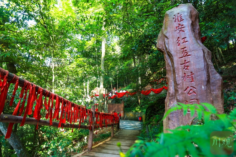 这棵雅安红豆树是四川最年长的古树名木之一,被林业部门评为“树王”,它生长在被评为“中国传统村落”的后盐村。这座村庄坐落在蒙顶山和碧峰峡间,现存11栋清代川西民居、千佛崖摩崖石刻、茶马古道和红军战斗遗址等,交融着茶马古道文化和红色文化。2021年,入选第三批“四川最美古村落”名单。