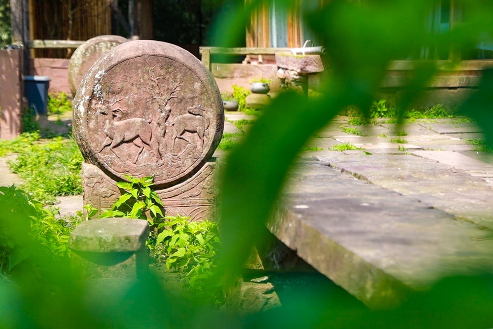 民居门口的抱鼓石上刻有鹿和梅花树(黄刚 摄)