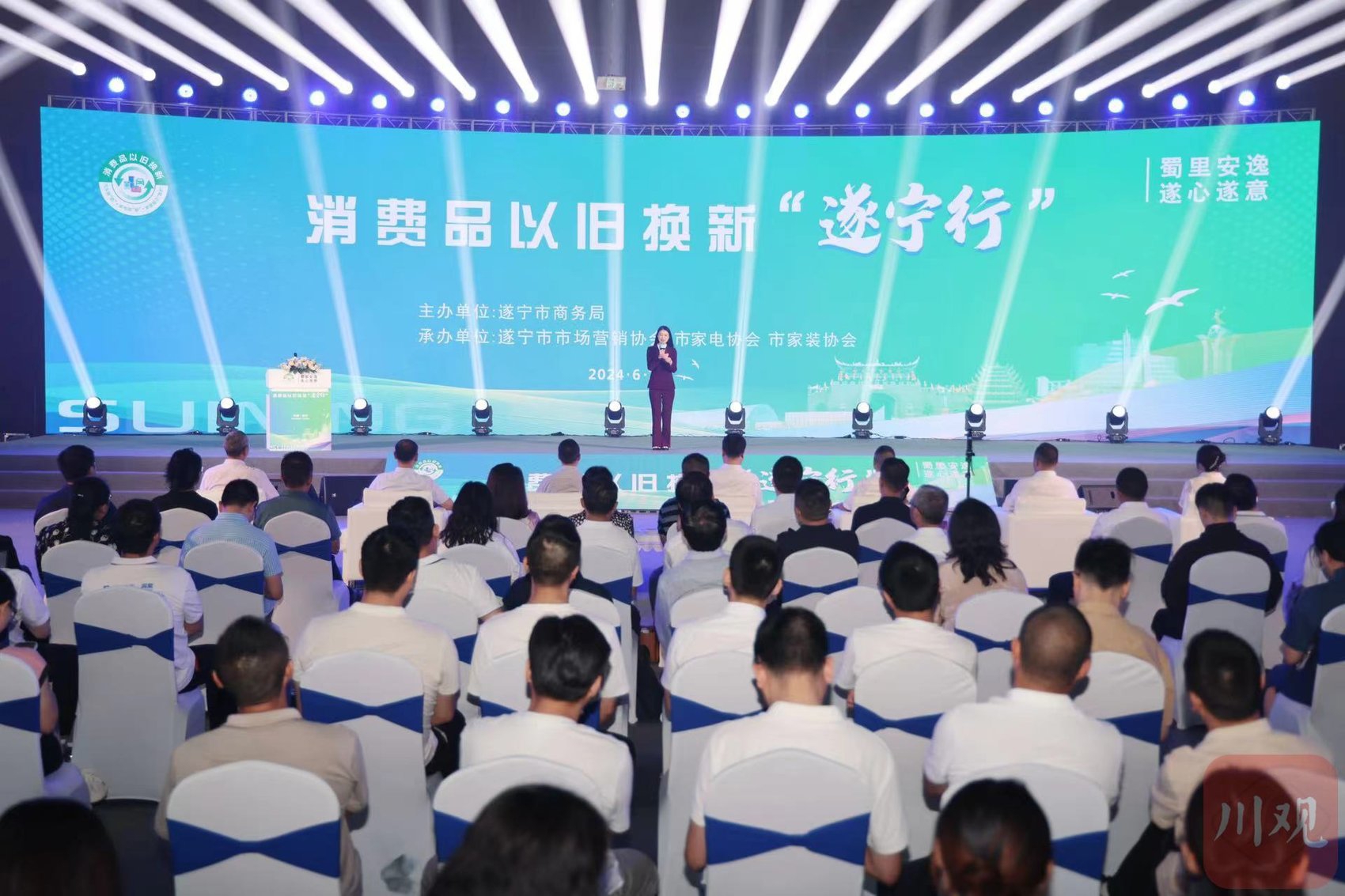 6月14日,以“蜀里安逸 遂心遂意”为主题的消费品以旧换新“遂宁行”启动仪式在遂宁市国际会展中心举行,标志着遂宁积极响应省市扩内需、促消费政策的举措拉开帷幕。