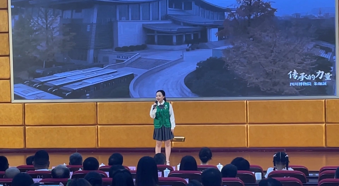 四川博物院志愿者讲解员朱珈颉带来红色故事《传承的力量》。 邓林灵 摄