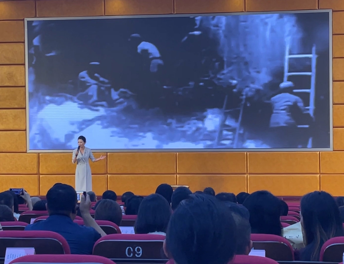 邓小平故里旅游区讲解员谢枫艳为大家带来了红色故事《一根枕木的故事》。 邓林灵 摄