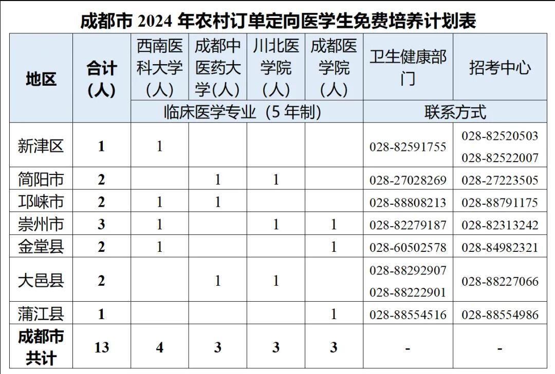 6月20日,记者从成都市卫生健康委获悉,成都市2024年农村订单定向医学生招生计划已对外公布。