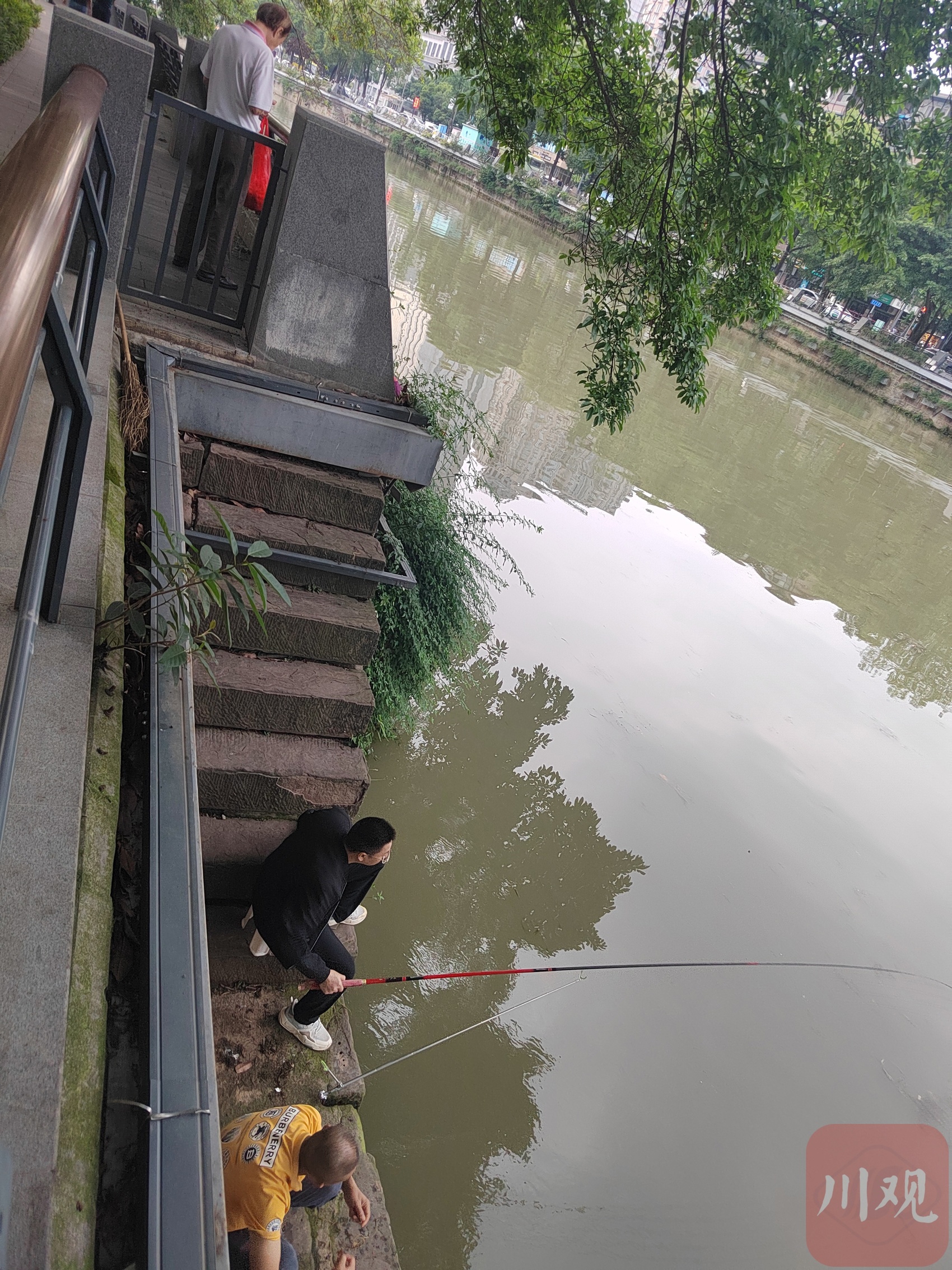 在成都市锦江区锦江绿道兴安桥段,记者多次见到垂钓爱好者坐在沿江台阶上悠闲垂钓,而他们上方,进入台阶的护栏门则虚掩着;