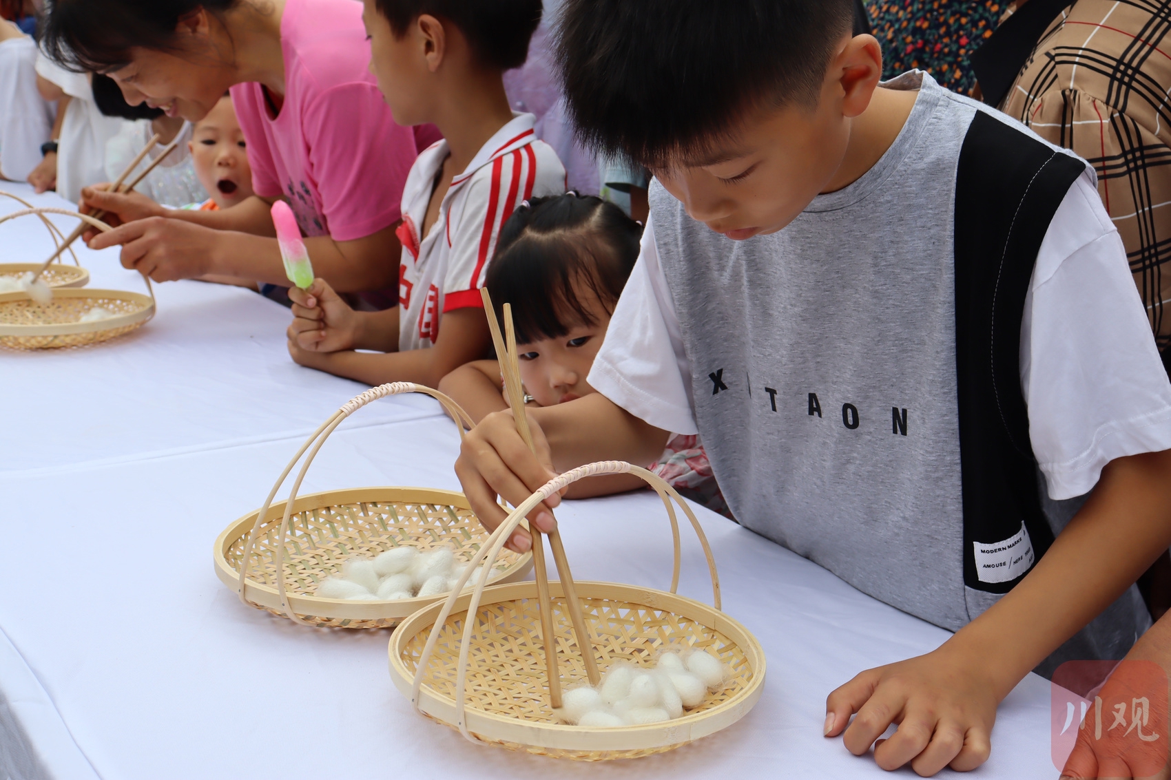 现场还同步开展“指尖蚕果”、“雕刻蚕艺”、“翠叶争锋”等娱乐活动,吸引众多村民游客前来参加。
