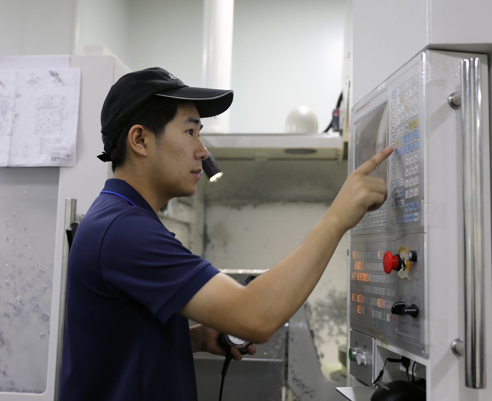 四川丹齿精工科技有限公司生产车间工人在操作设备。