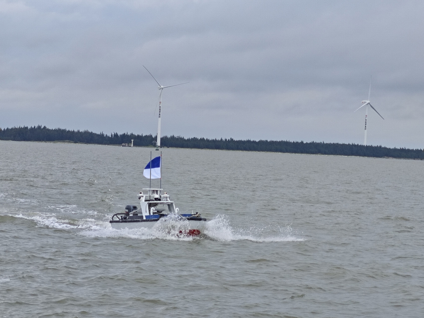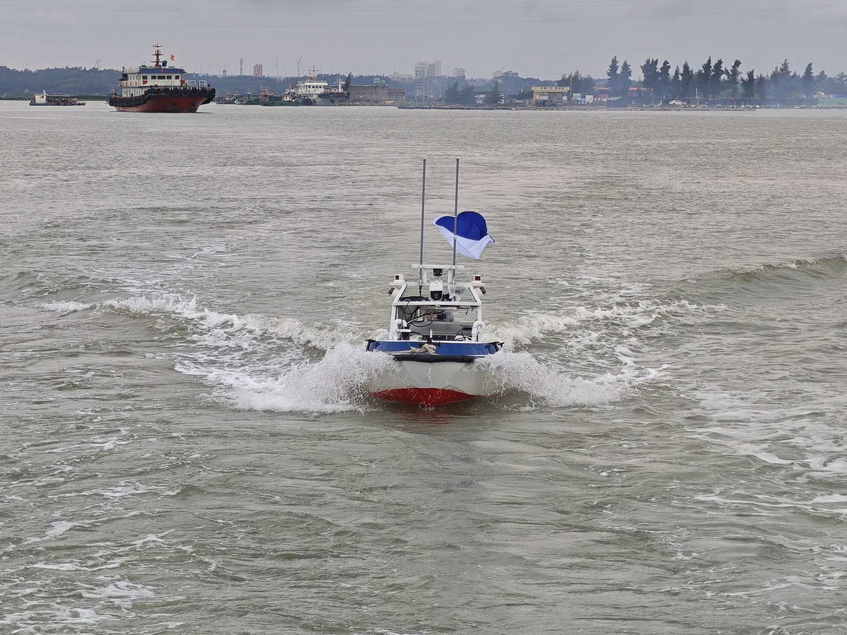 “问江”型无人船在广东湛江海域开展测绘测试。(长江泸州航道局供图)