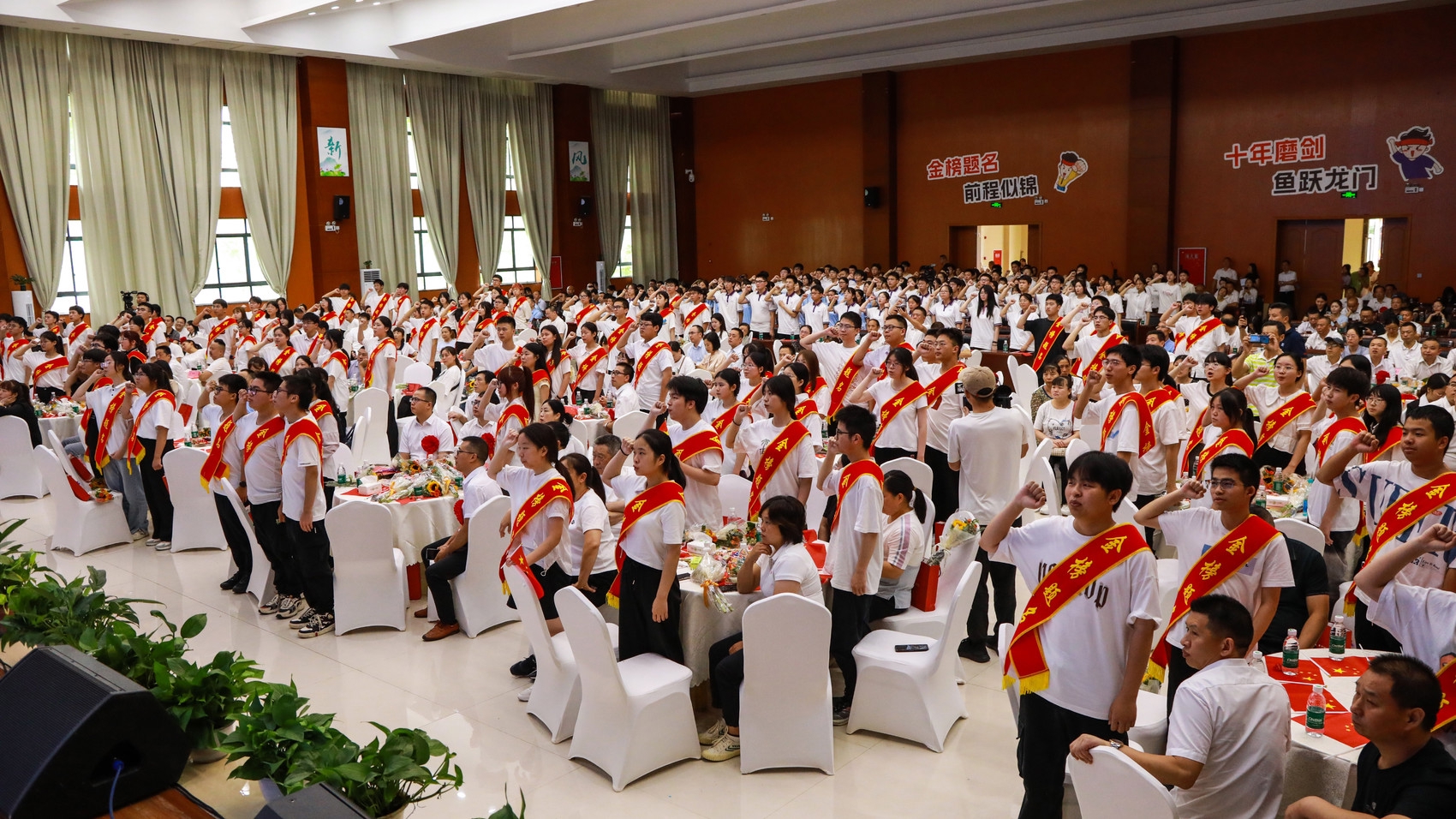 上午8时,准大学生们肩佩绶带,在家长的陪同下踏上红毯,纷纷在签字墙上签名,共赴这场仪式感满满的集体升学廉礼。