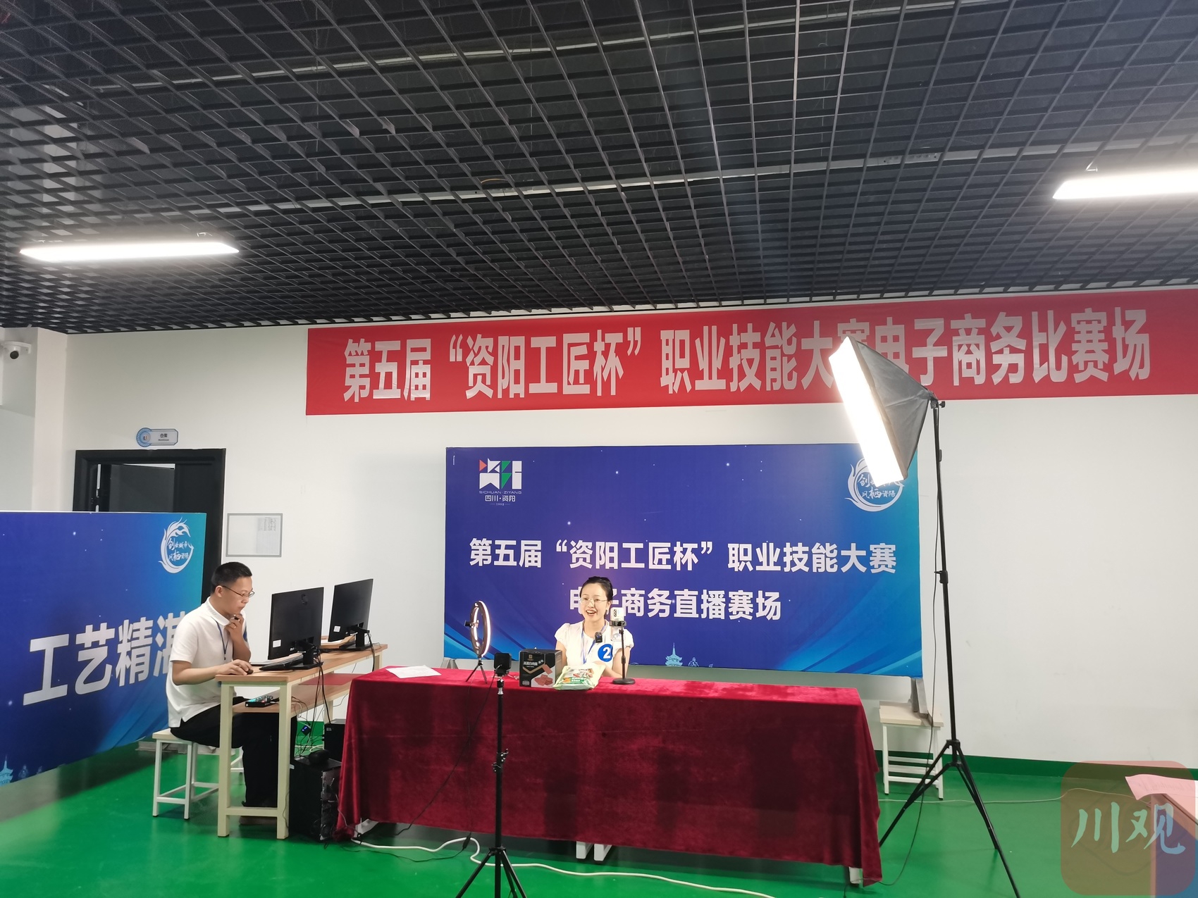 “朋友们好,欢迎来到资阳工匠杯电商直播间,今天的助农直播,给大家带来了猪肉脯和红薯干两款零食。”......比赛现场,气氛热烈,参赛主播通过实物展示、现场试吃、网友互动等方式推介产品。