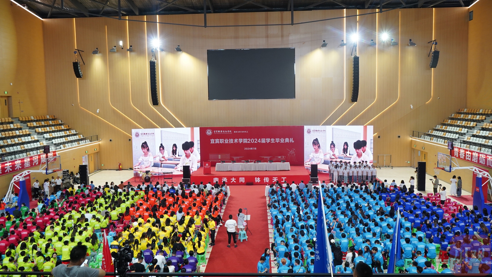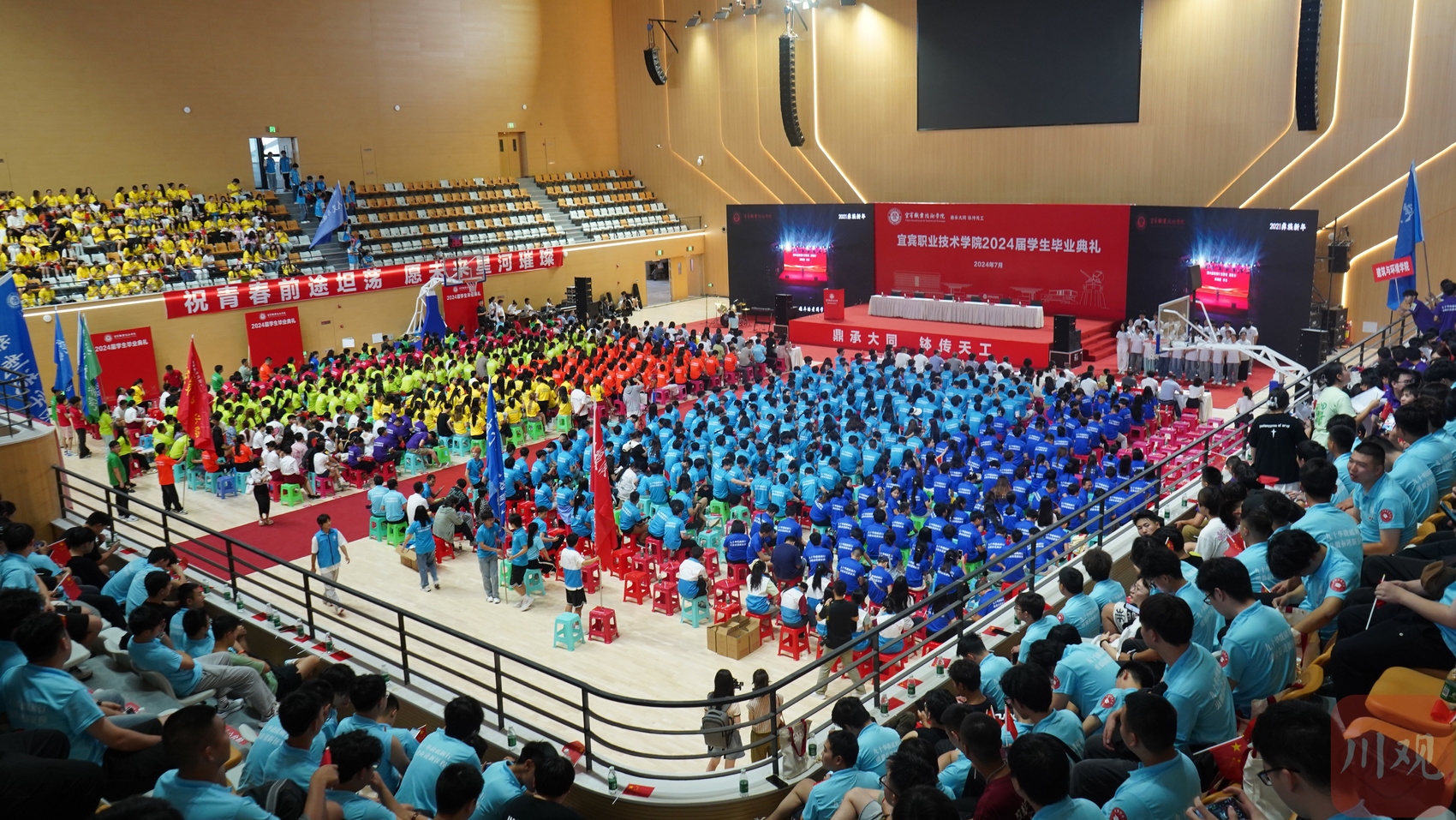 7月2日下午,宜宾职业技术学院举行2024届学生毕业典礼,这是宜宾职业技术学院搬到南溪新校区后首次举办的毕业典礼。当天,共享中心体育馆内座无虚席,热闹非凡,4484名毕业生身着学院服,共同逐梦人生崭新篇章。