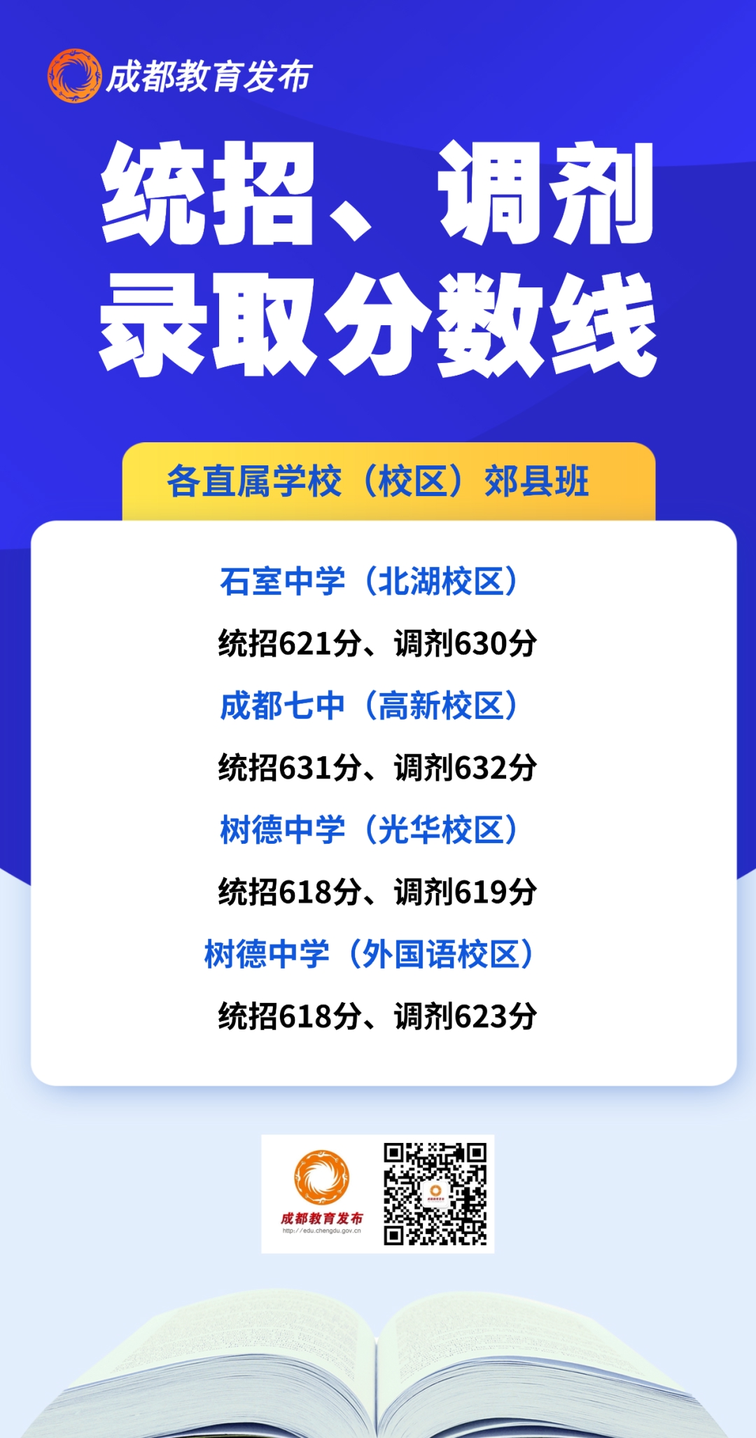 本批次录取时,石室中学(北湖校区)、成都七中(高新校区)、树德中学(光华校区)、树德中学(外国语校区)共录取成都市非“5+2”区域考生215名。坚持实行1分段投档,按志愿顺序投档录取。