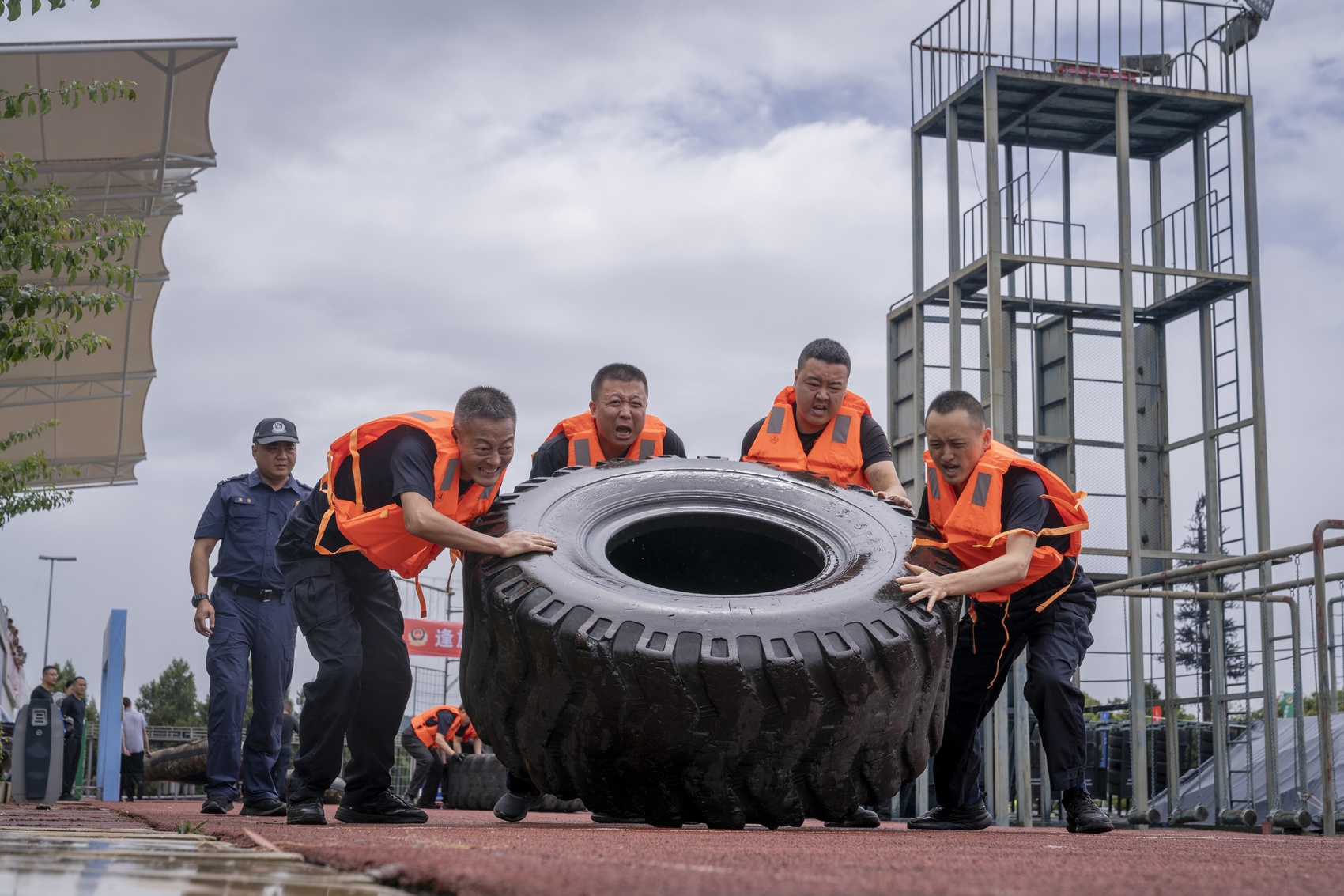 随后的紧急驰援比赛,以抗洪抢险为背景,设置紧急出警、抬艇冲锋、排除障碍、抢运物资、长途奔袭和战地救援六个环节,通过比体能、比技能,推动各级公安机关全面提升抢险救灾战备水平和遂行任务能力,随时做到一声令下,拉得出、打得赢。