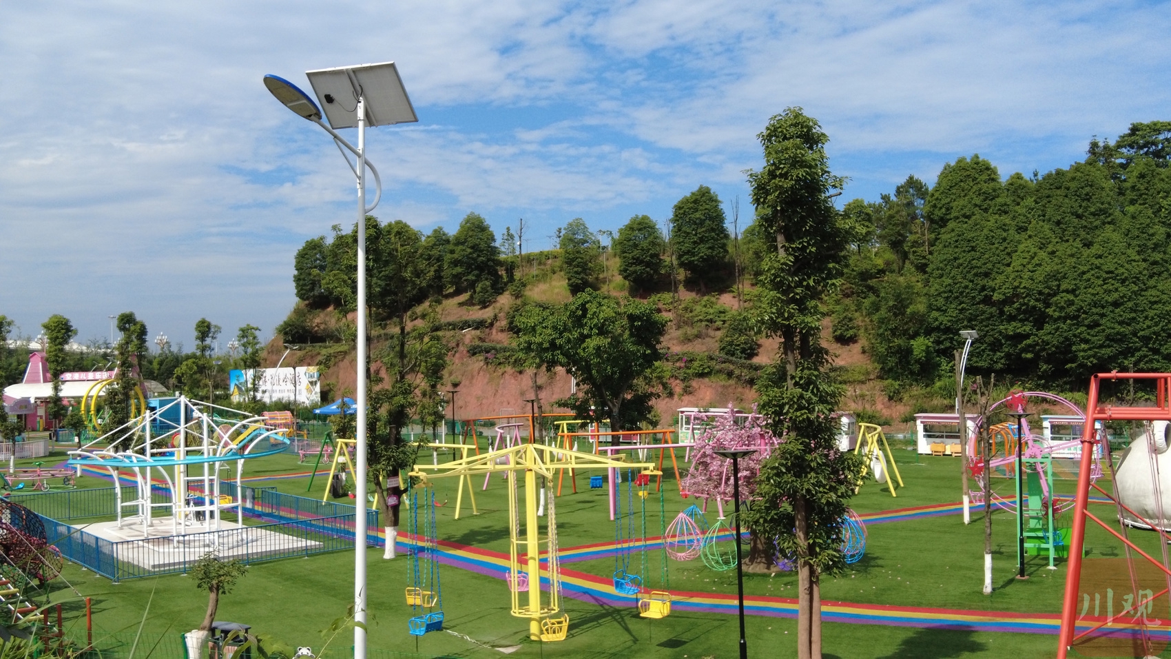7月2日,天气十分炎热,但在宜宾五粮液机场对面的山头上,游客正惬意欣赏空港风景,厨师们正在准备晚宴;儿童游乐园里,不少放暑假的小孩在玩耍、嬉戏……这个依托宜宾五粮液机场打造的“空港乐园”总面积约800余亩,距离宜宾主城区仅14公里,是集餐饮、住宿、游玩为一体的娱乐场所,设置了亲子游乐、农耕游、特色烤全羊、柴火鸡、KTV等50多种游乐项目和设施。