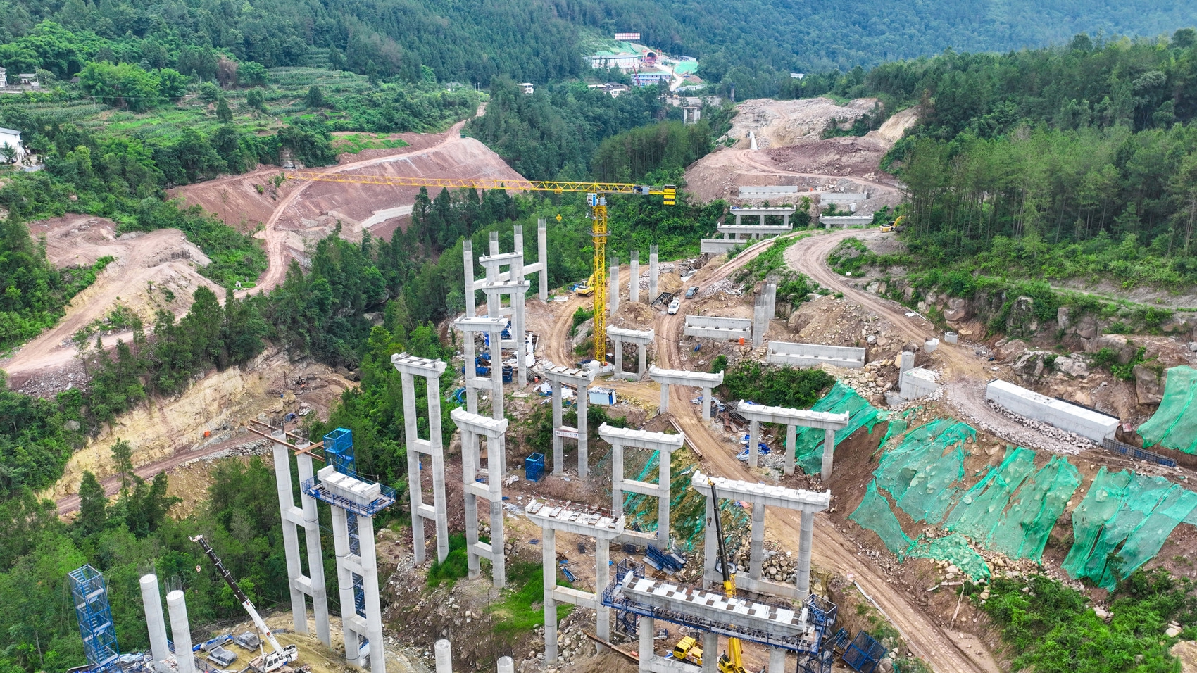 镇广高速通广段(平昌境)云台隧道出口端前云台互通桥墩林立