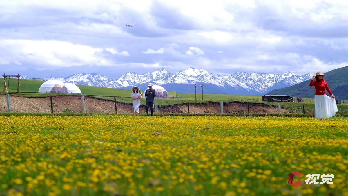 红原县花海夏日风光旖旎,吸引众多游人。(C视觉摄影师 段金晶 摄)