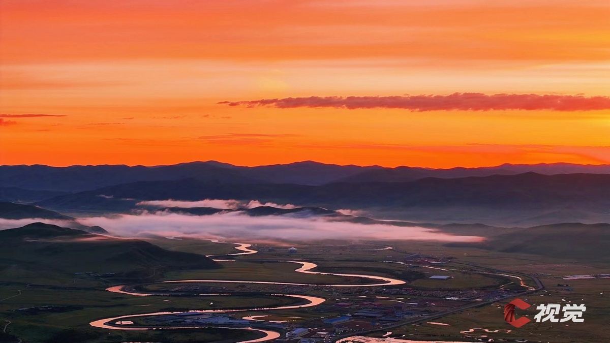 红原县月亮湾朝霞美景。(C视觉摄影师 王庆新 摄)