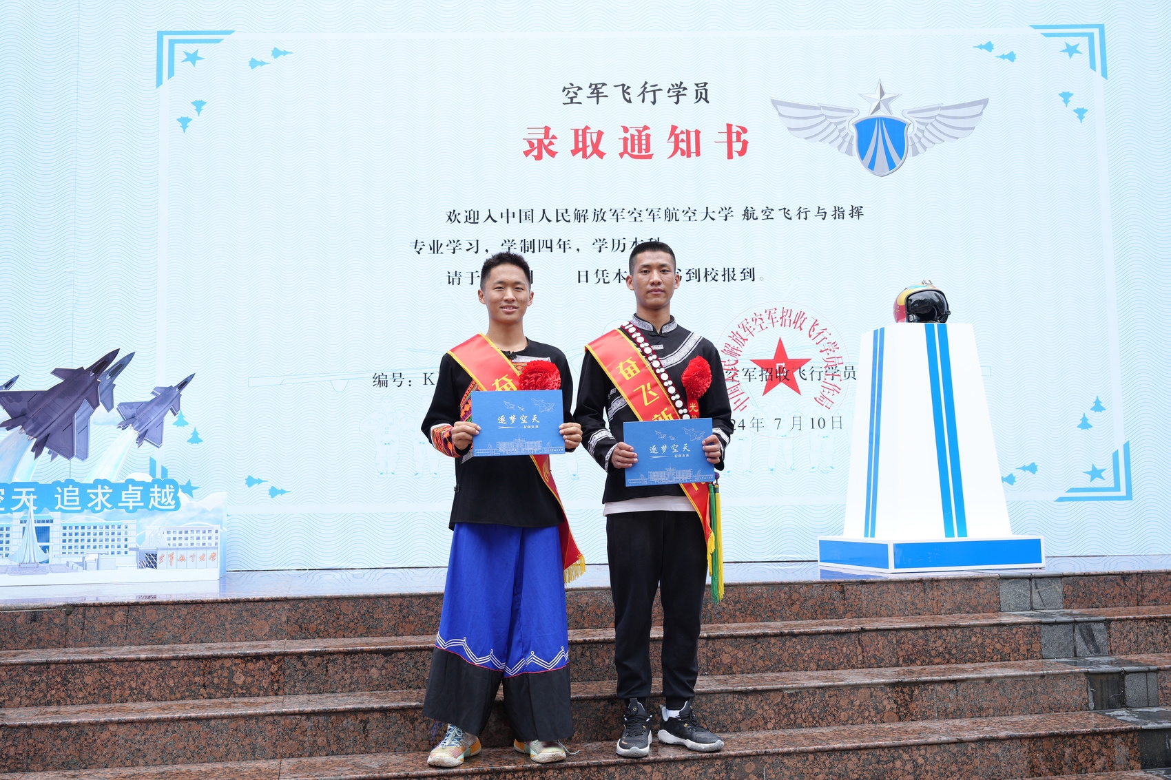 据介绍,这批同学经过严格的医学选拔、心理选拔、政治考核、文化成绩测试,正式被空军航空大学录取为飞行学员。新录取的同学中,有两名来自凉山彝族自治州的彝族少年罗伍呷和张伍迁。
