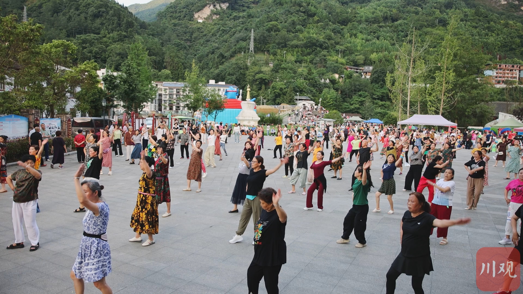 正在跳舞的游客。汶川县融媒体供图。
