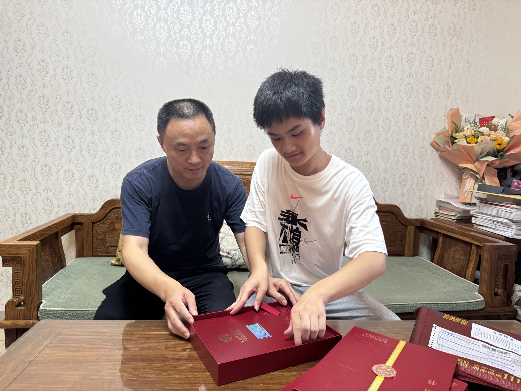 “他从小就学习优异,不让我们操心,这次也是终于圆梦了。”杜高立为儿子佩戴了荣耀绶带,欣慰地说,儿子学习努力,高三时,除学校布置的习题外,还自己加练了两套理综试卷册,只为考上理想的大学。