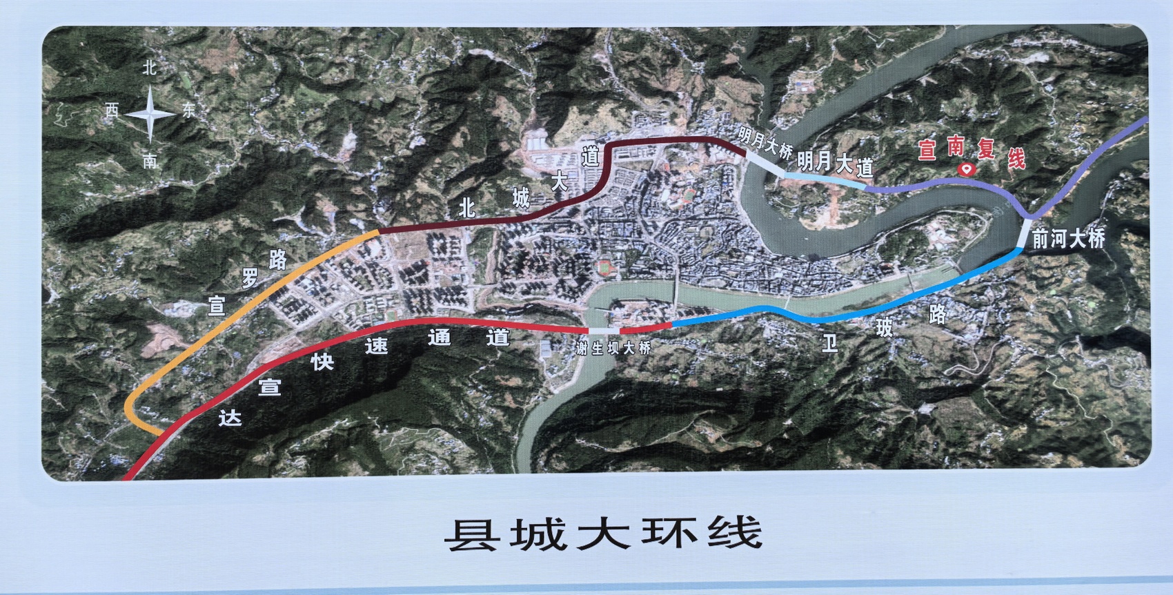 达(州)宣(汉)快速通道谢生坝大桥位于宣汉县城边,是县城大环线的重要拼图。杨柳摊开一张示意图:达宣快速通道、宣罗路、北城大道、明月大道、宣南复线、卫玻路及谢生坝大桥、明月大桥、前河大桥等在宣汉城边串联成环,形成车辆“近城不进城”的交通新格局,将发挥通行顺畅、拉大城市骨架和促进宣汉融入达州主城区实现同城化发展等多重作用。
