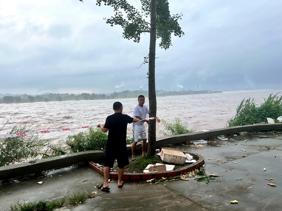 五通桥区冠英镇组织开展雨后灾损核查,对涉险水域设置警示带。乐山市应急管理局供图