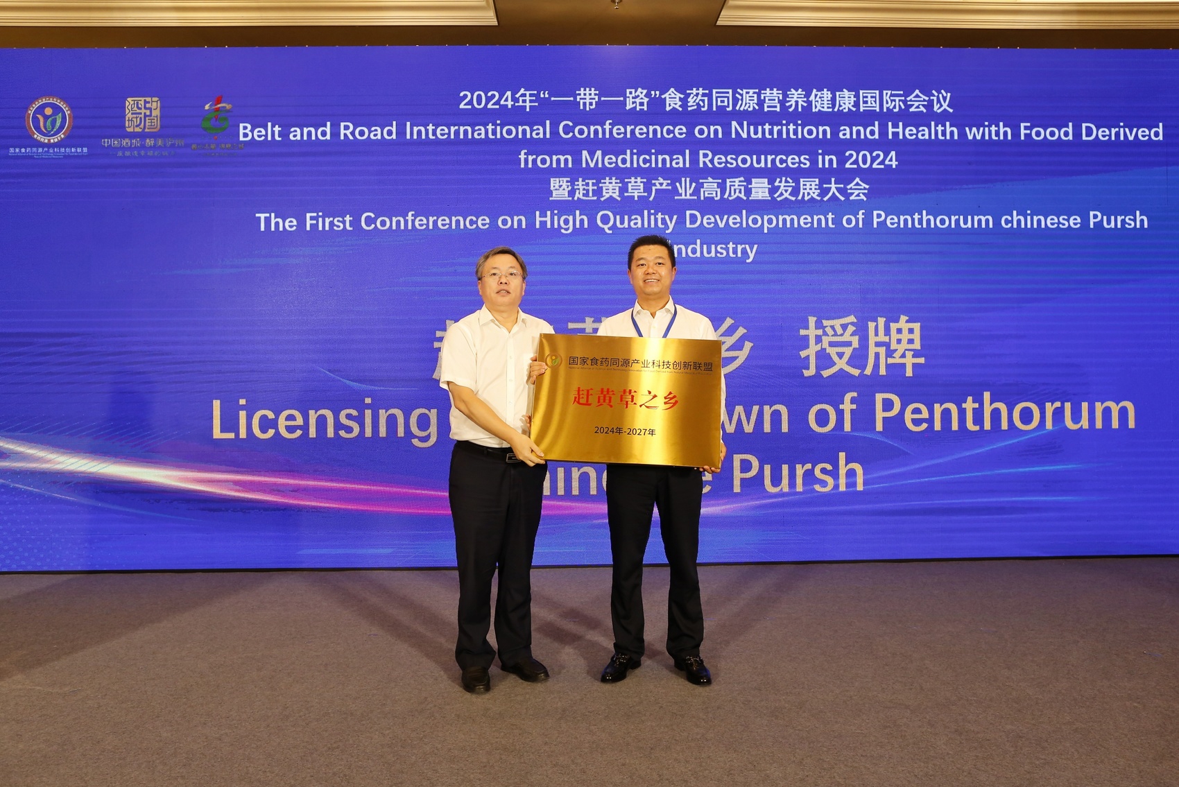 此次大会上,古萃(古蔺)生物科技有限公司董事长李刚也接过了一块新牌子——赶黄草产业专委会。