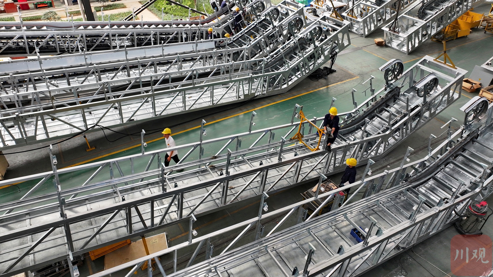 2024年7月23日,在位于成都市金堂县境内的成都康力电梯有限公司电、扶梯组件生产车间里,工作人员正忙碌赶制电、扶梯。