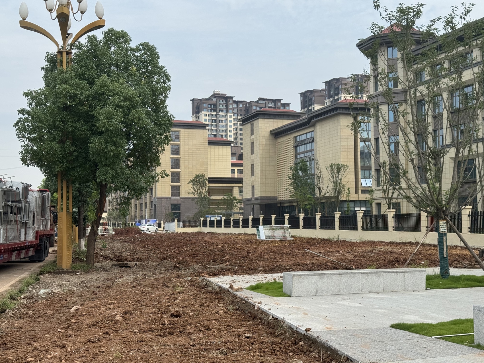 南充高中文峰校区门外,施工人员正在进行土地平整作业。徐浩煊 摄