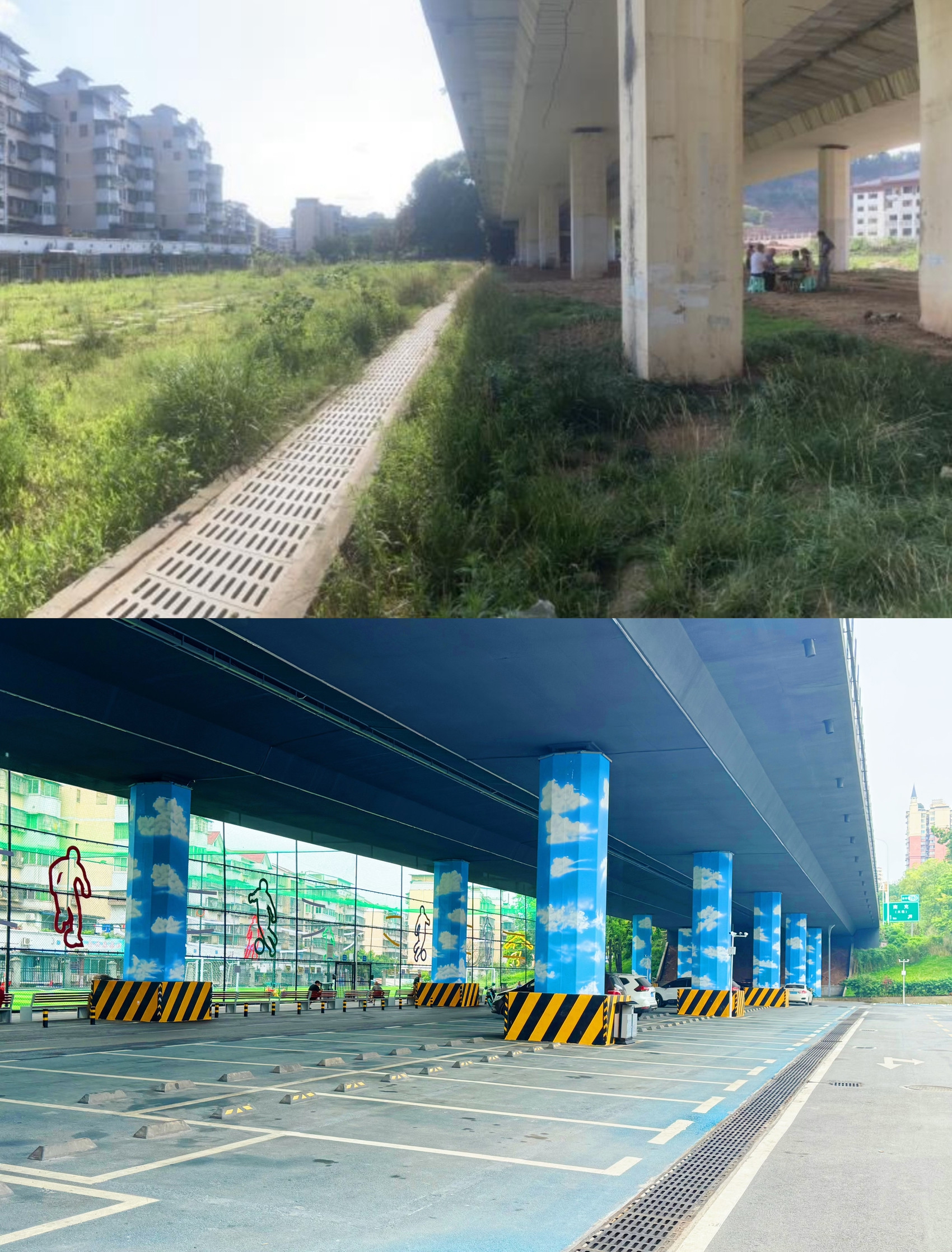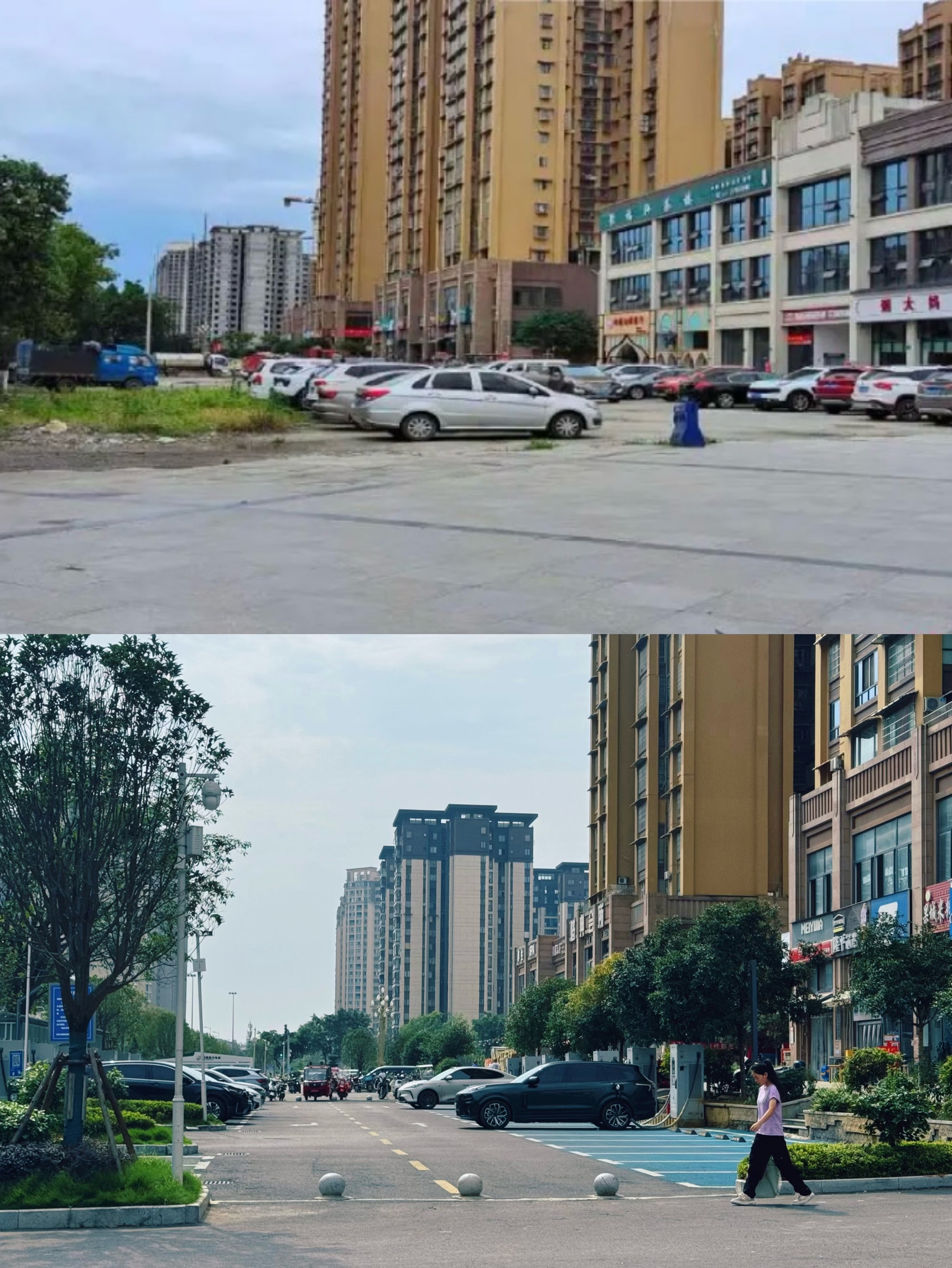 蚂蝗堰社区“邮票地块”改造前后对比图。嘉陵区综合行政执法局供图