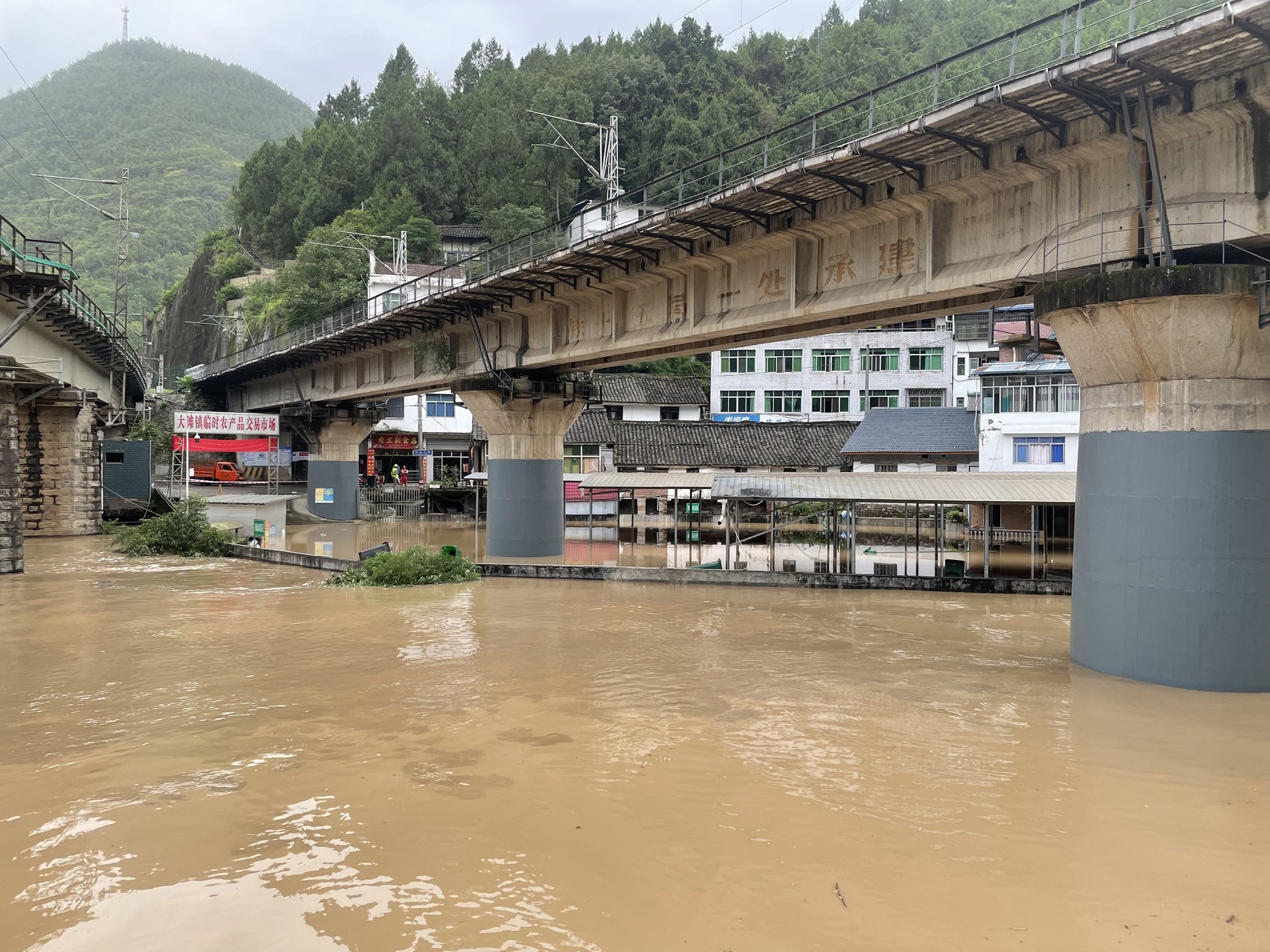 7月24日,朝天区大滩镇场镇由于嘉陵江洪水上涨,道路已实施管制。朝天区委宣传部供图