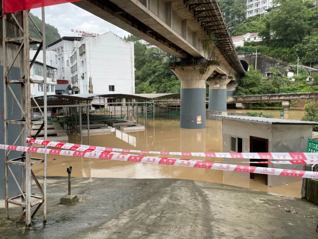7月24日,朝天区洪水上涨区域拉起了警戒线。朝天区委宣传部供图