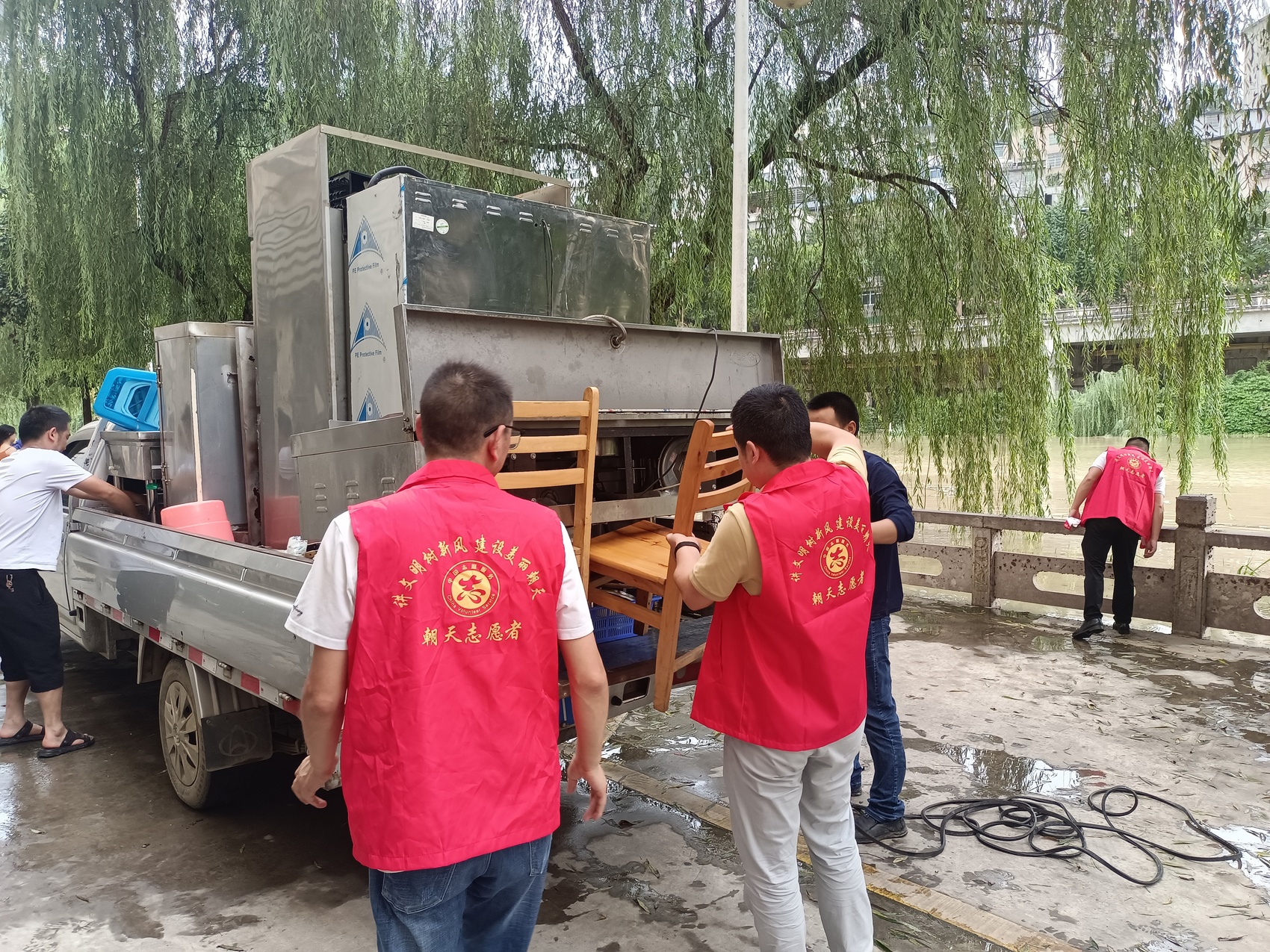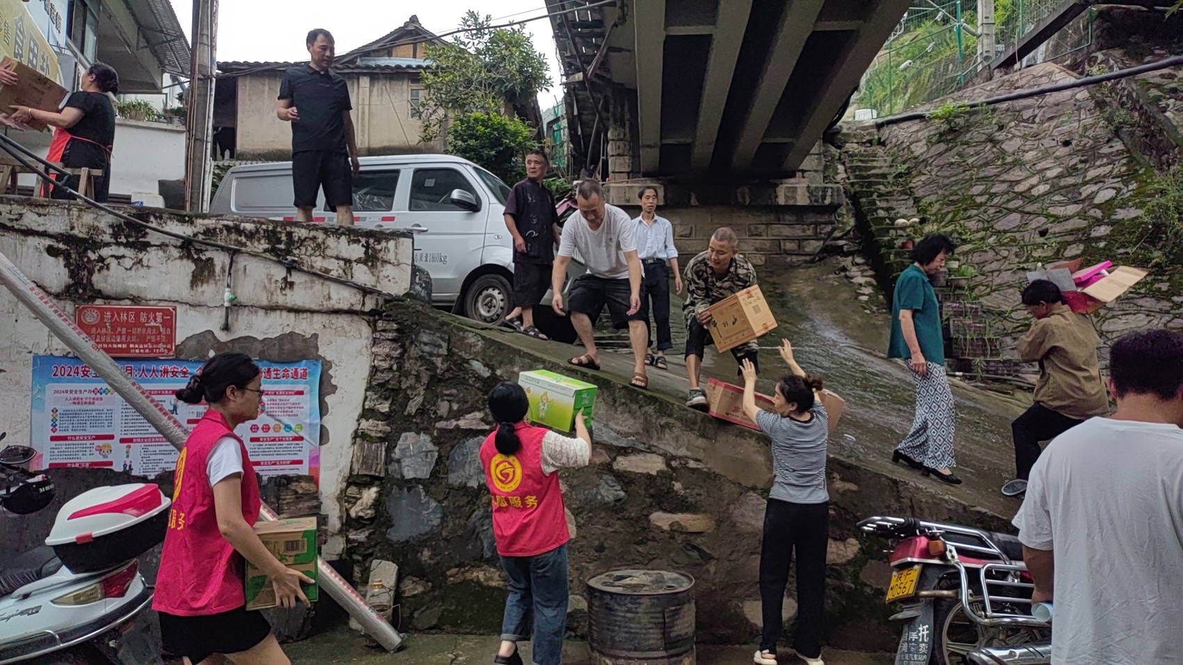 7月24日,朝天区志愿者帮助群众转移家中物资。朝天区委宣传部 供图