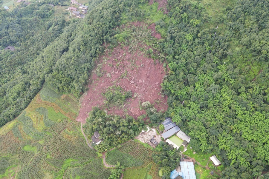 人员全部转移结束后15分钟,红岩凼附近山体发生了大规模滑坡,致使该区域内5栋村民房屋,1家生猪养殖场被掩埋,周边9户农房受损。