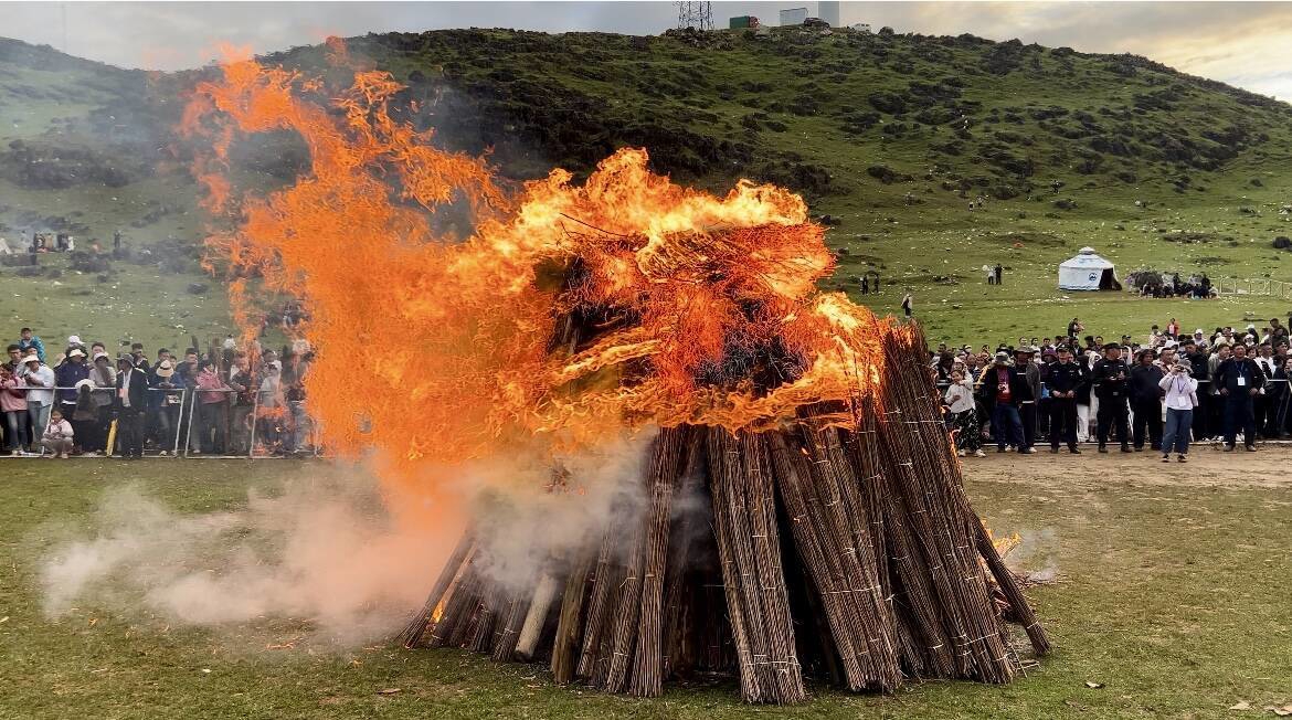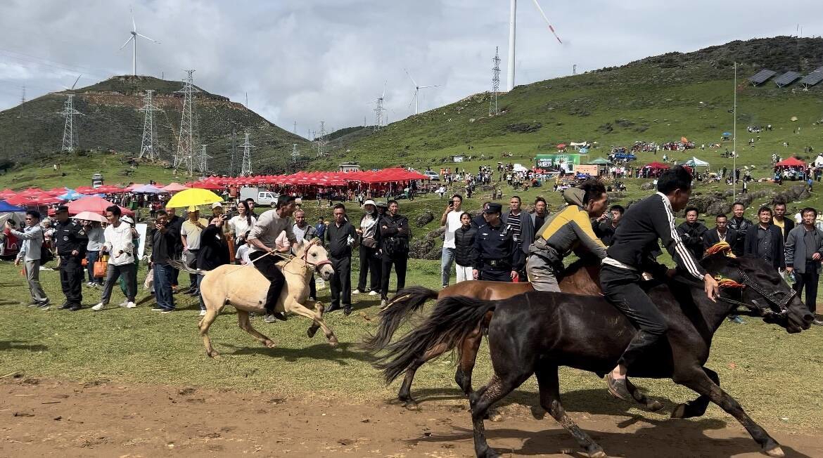 高山之巅,云海翻腾。会东县鲁南山上的草地如同铺开来的葱绿绒毯,广袤无垠。7月30日,“云端鲁南•火舞彝乡”2024年彝族传统火把节系列活动在会东县野租乡鲁南山大跑马坪精彩上演。此次火把节活动包含摔跤、斗羊、赛马、斗牛、跑山赛跑、“云端索玛”选美、百人朵乐荷表演、“阿普亚虹”专场草甸音乐会以及万人达体舞等。