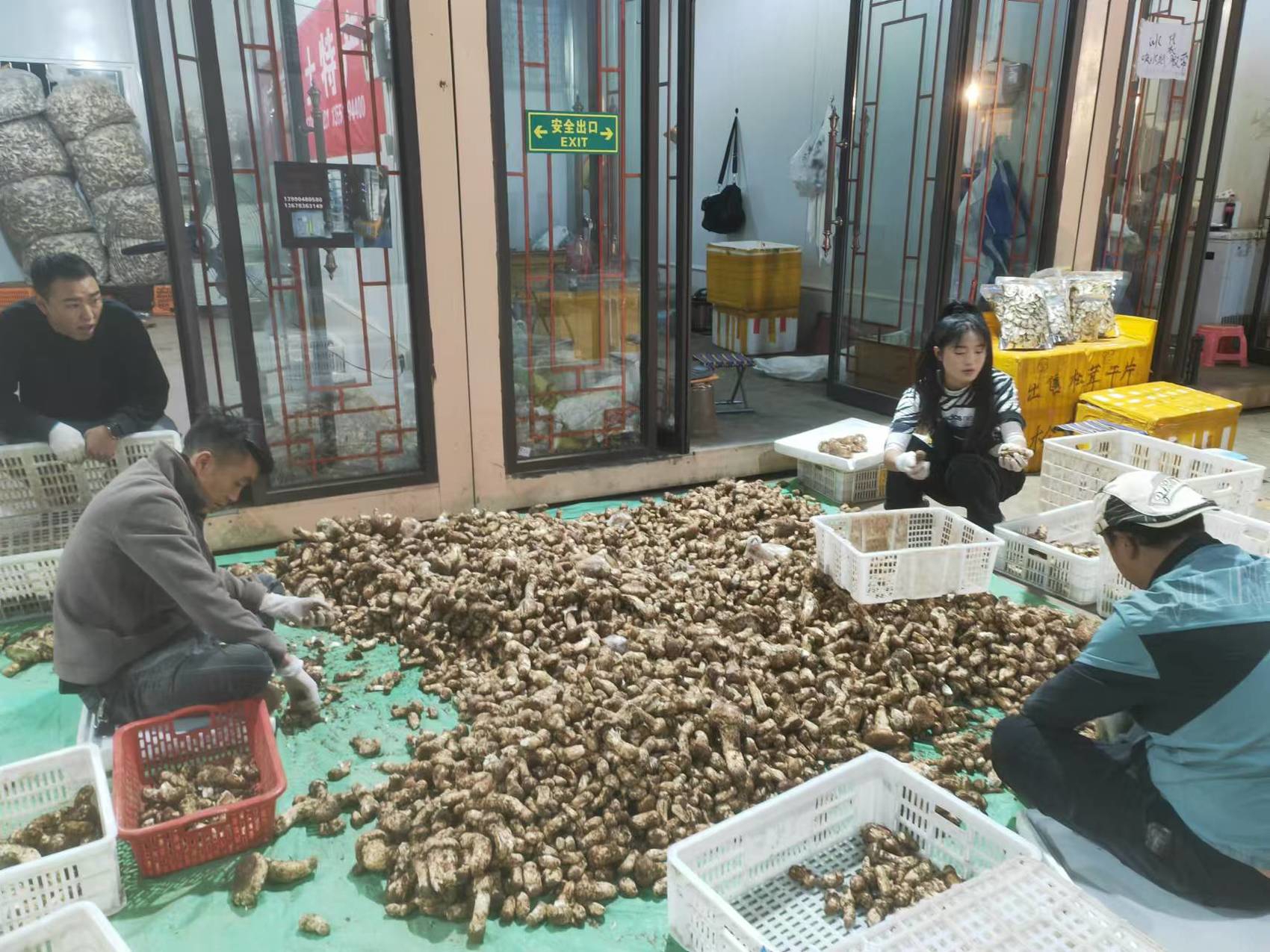 雅江县松茸交易中心,商户正在分拣收购来的松茸。受访者供图