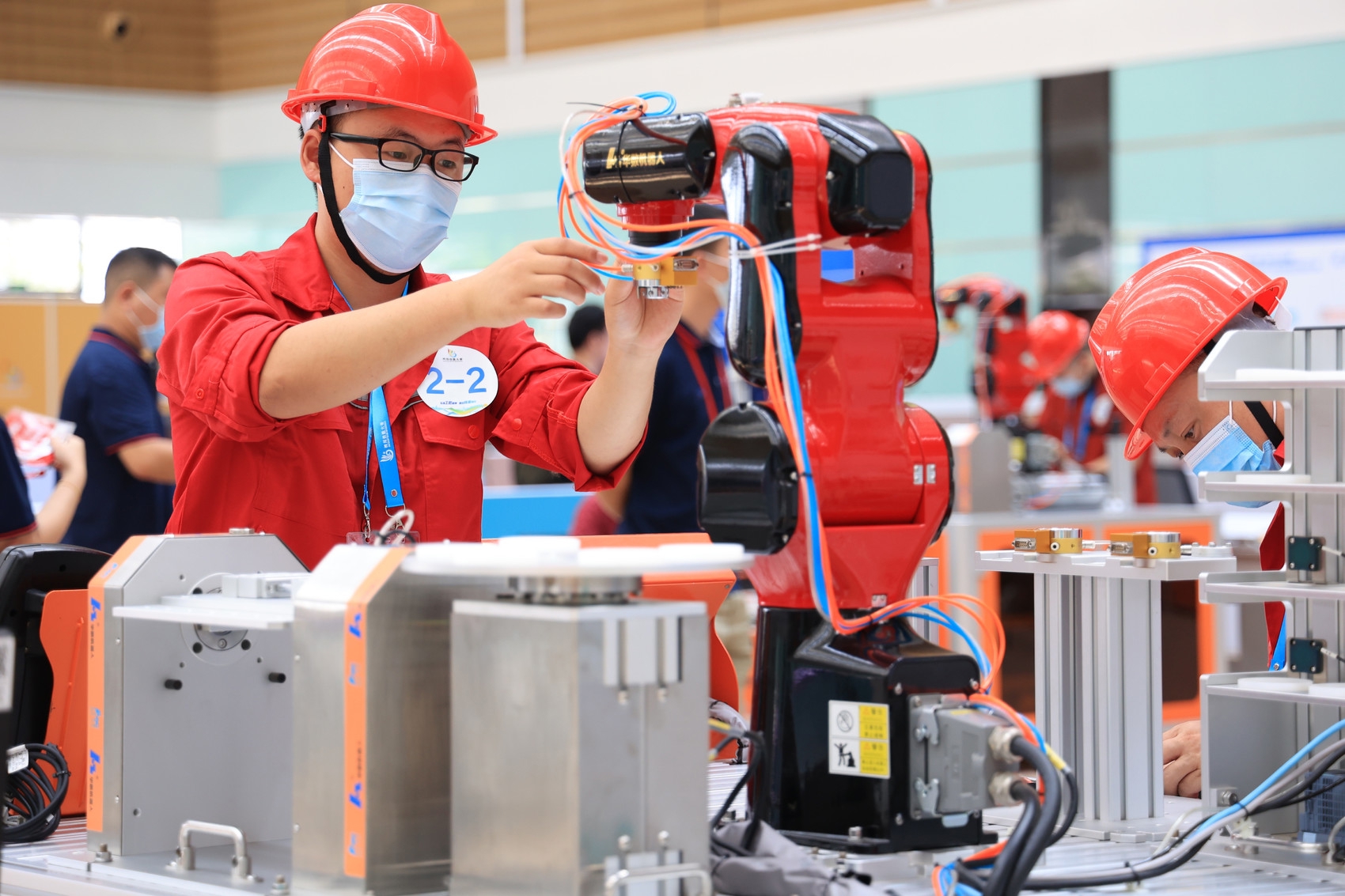 技能人才助力四川高质量发展。图为在四川省第一届技工院校职业技能大赛上,一名技能人员参加工业机器人系统操作员项目比赛。