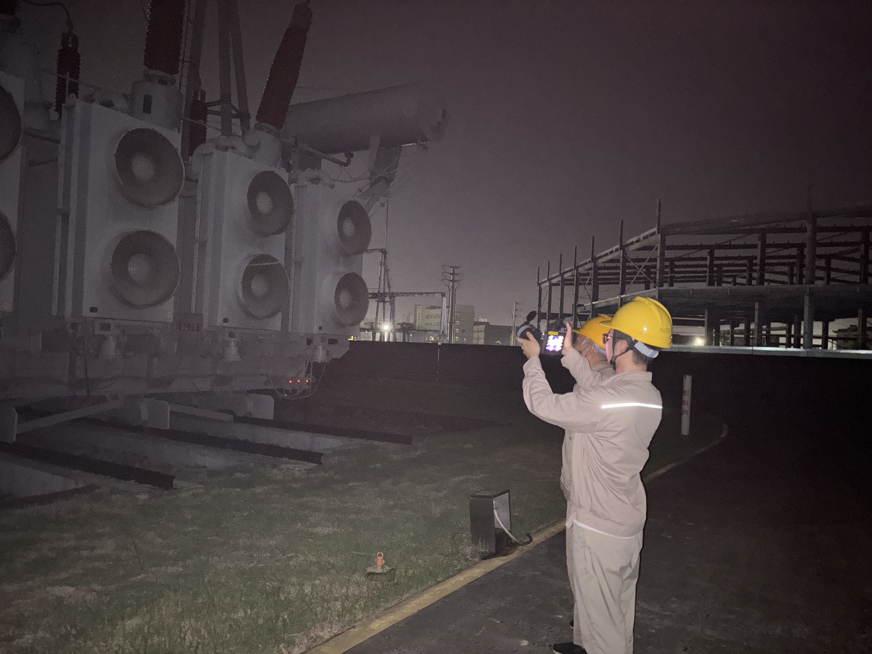 高压分公司深夜开展变电站红外测温工作(陈则宇 摄)