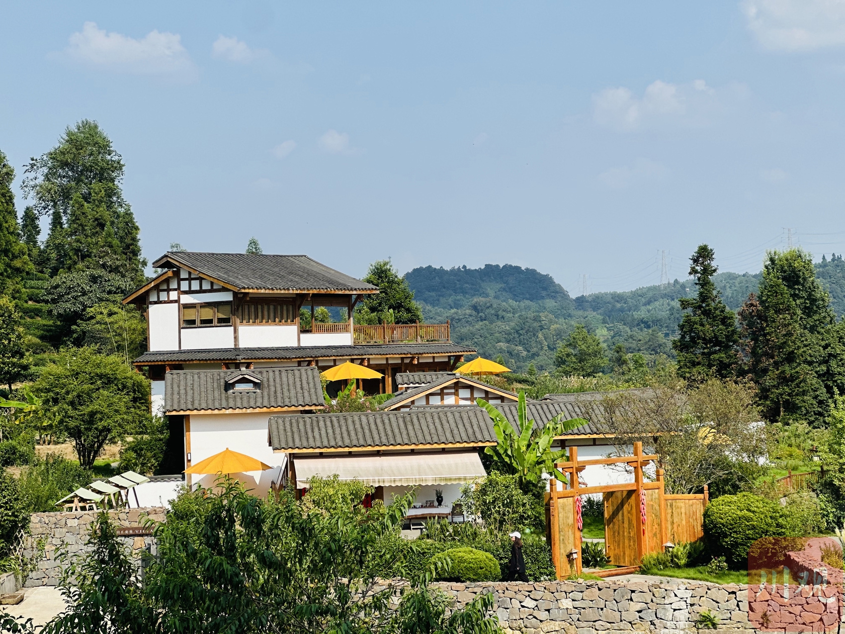 骑龙村茶山中的精品民宿。吴梦琳 摄