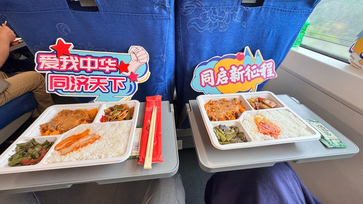 今年的餐饮服务不仅有滋有味,更“有声有色”。早、中、晚三餐菜品均精心设计,其中两餐兼顾家乡口味和上海口味,寓意迎来送往,开启新程。列车上特别推出了“川之味”节目表演,用美妙的歌声传达出对同济新生的祝福。