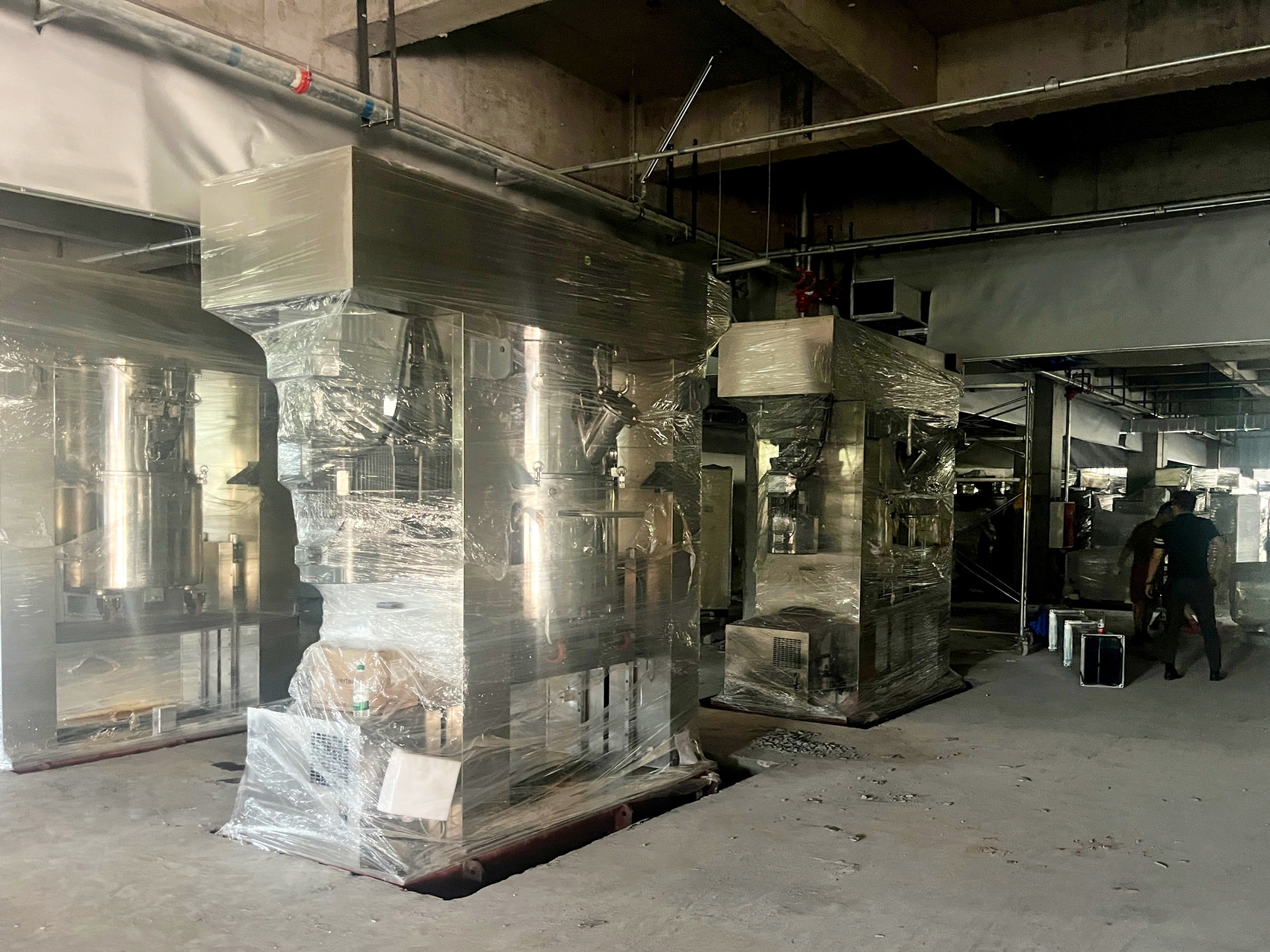 在巴中市绿米新能源科技有限公司厂房建设现场,电池电芯设备正搬运入场。