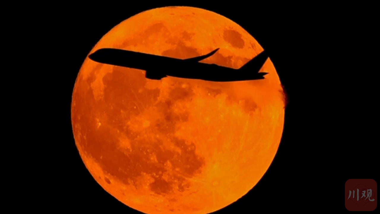 8月20日凌晨拍摄的“超级月亮”,飞机穿月采用慢速拍摄。