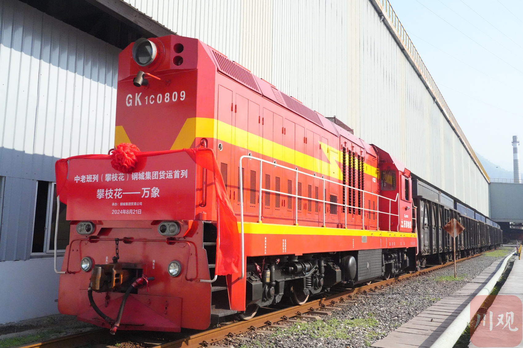 8月21日9点,1600吨定制钢坯从攀枝花市出发,它们被分装到54个箱子、27个车厢,由中老班列(攀枝花)专列发往老挝万象。