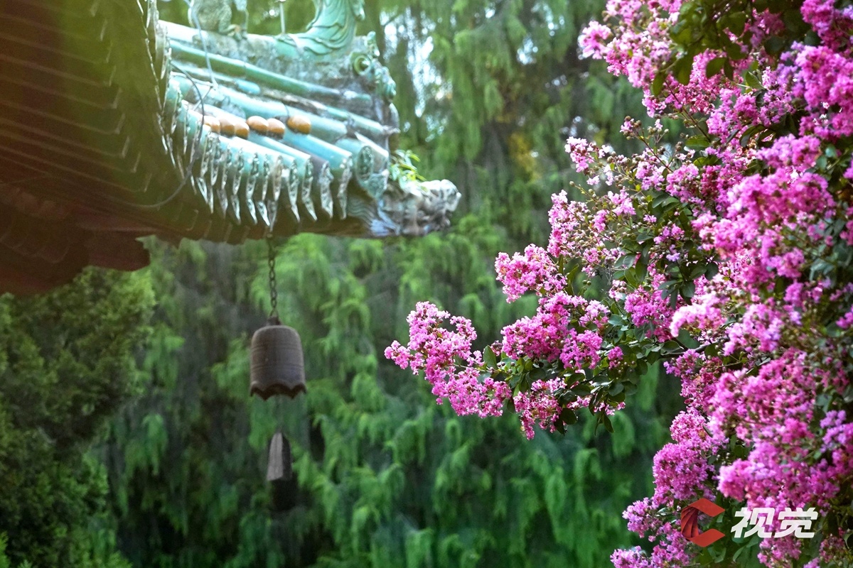 寺内紫薇花开正旺,紫红的花朵缀满枝头。 C视觉摄影师 胡宇 摄