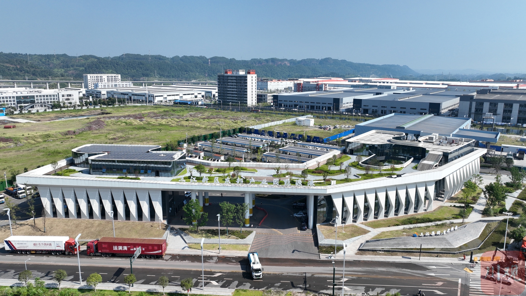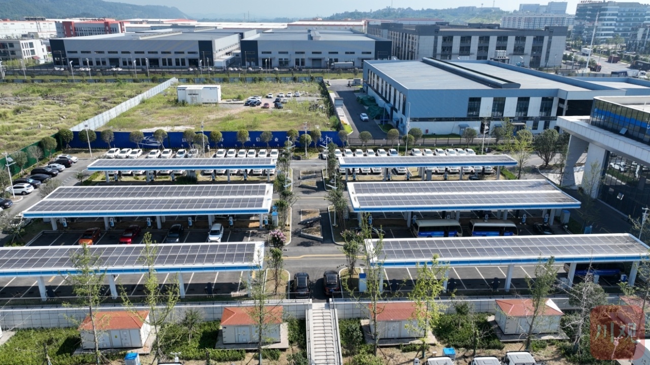俯瞰宜宾三江新区东部产业园能源港内的电动汽车充电站。 罗顺 摄