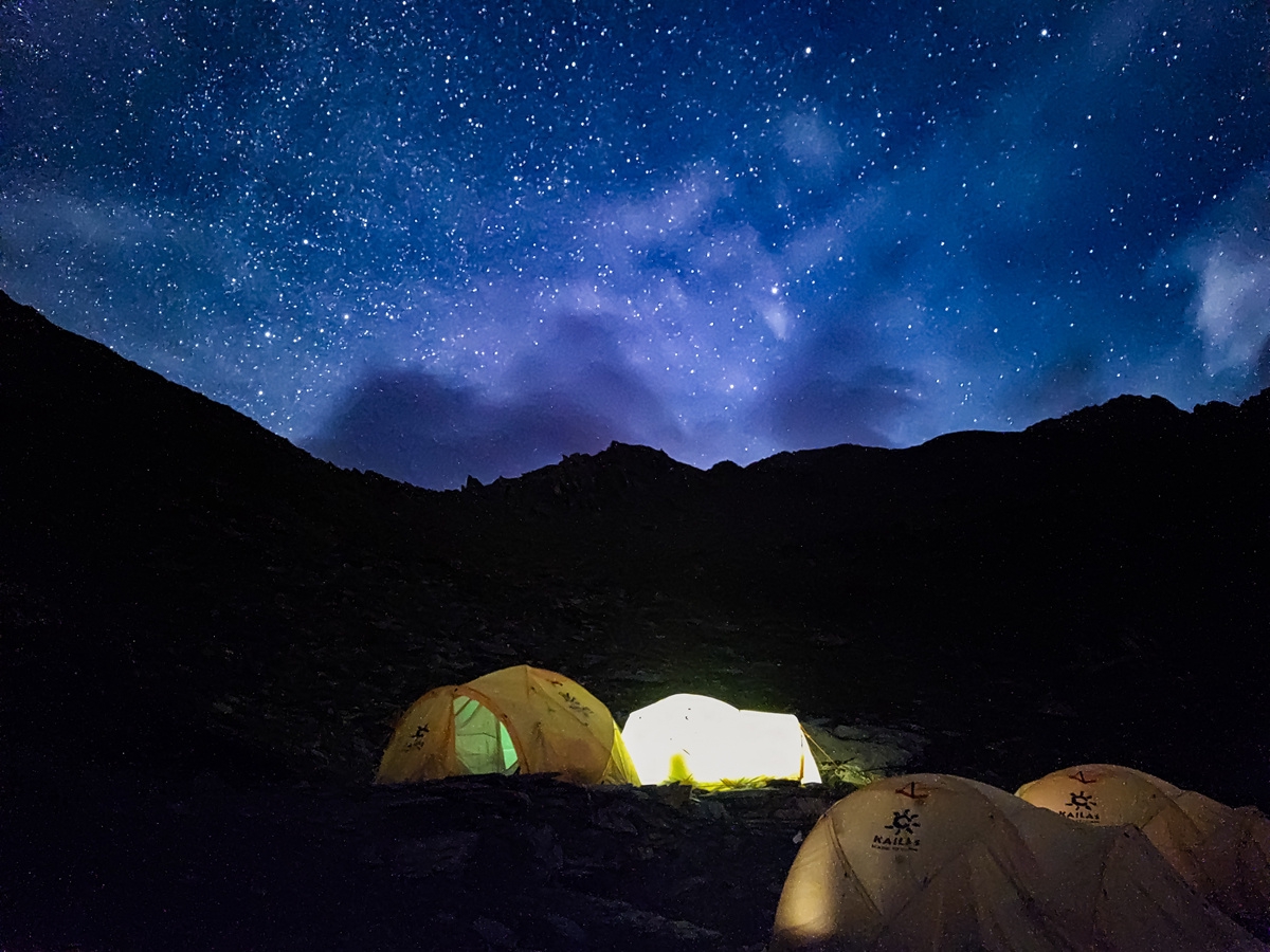 游客在四姑娘山星空下露营。扎西 摄