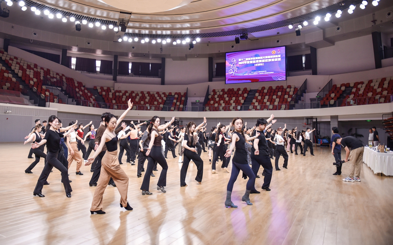 8月27日,2024中国体育舞蹈联合会国家级教师培训班(成都站)暨第十二届世界体育舞蹈大赛赛前训练营,在成都市城北体育馆开班,来自全国各地的100余名体育舞蹈教师参加了本次培训班。该班由中国体育舞蹈联合会主办,成都市体育舞蹈协会承办。