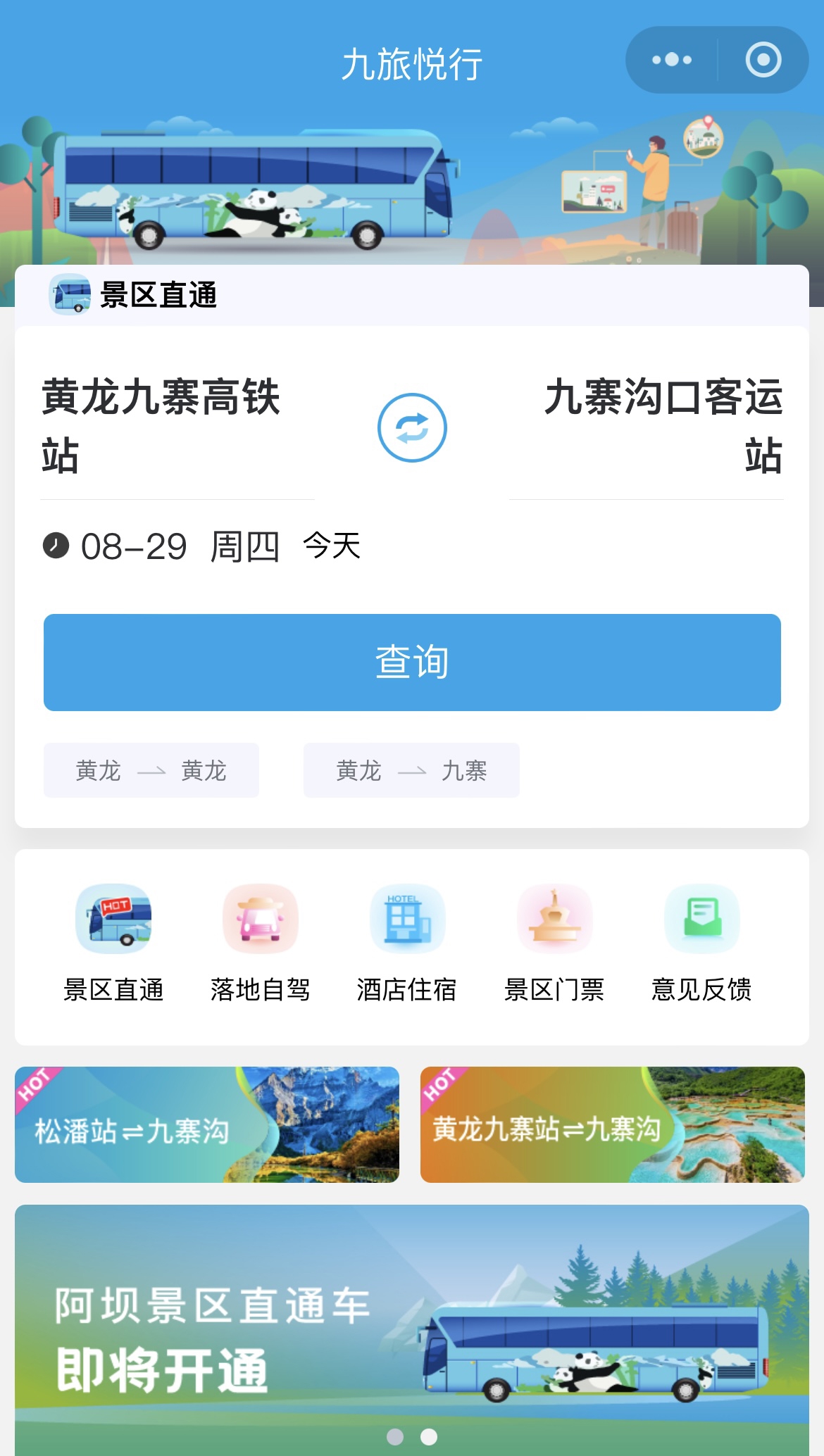 游客可以在“九旅悦行”接驳车预订小程序购买接驳车票、景区门票或落地自驾产品,也可以出站后前往游客中心进行线下购票。
