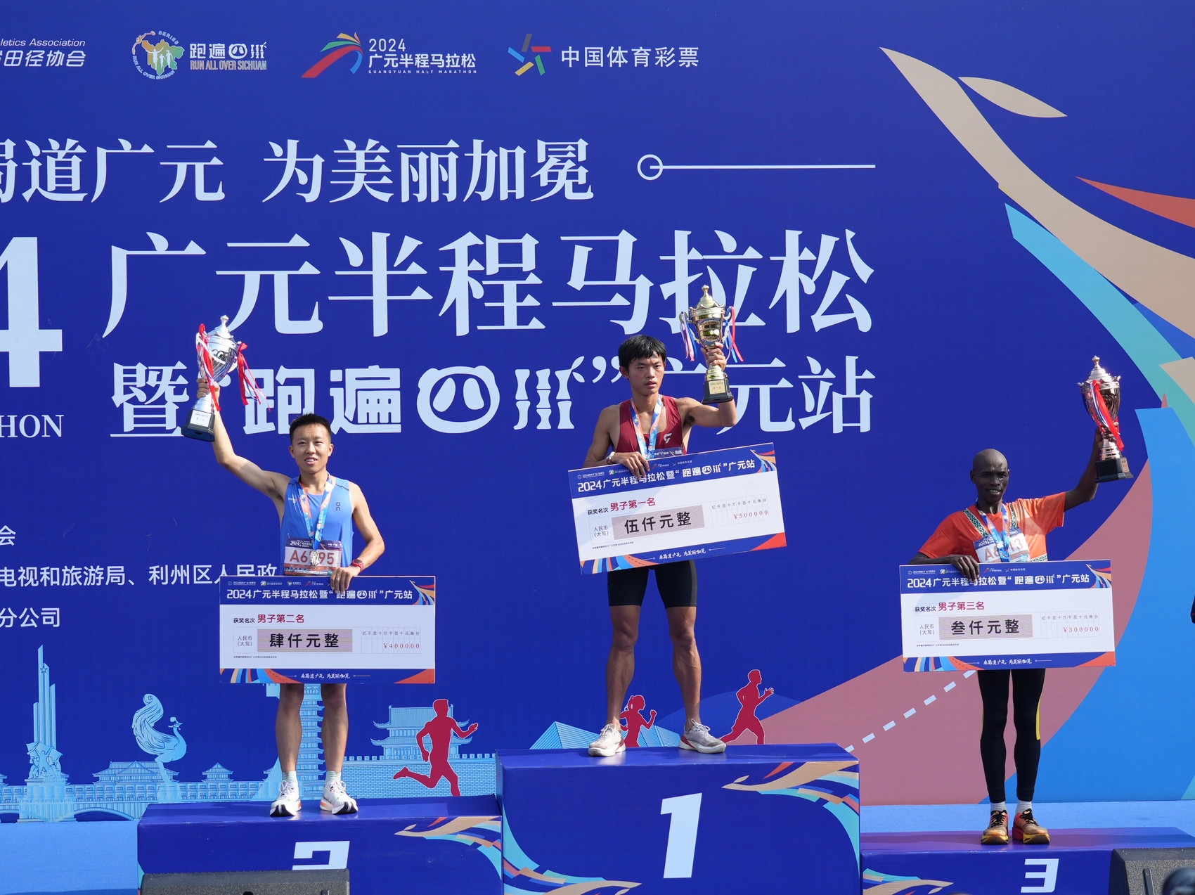 广元半程马拉松赛事男子组前三名。王鹏 摄