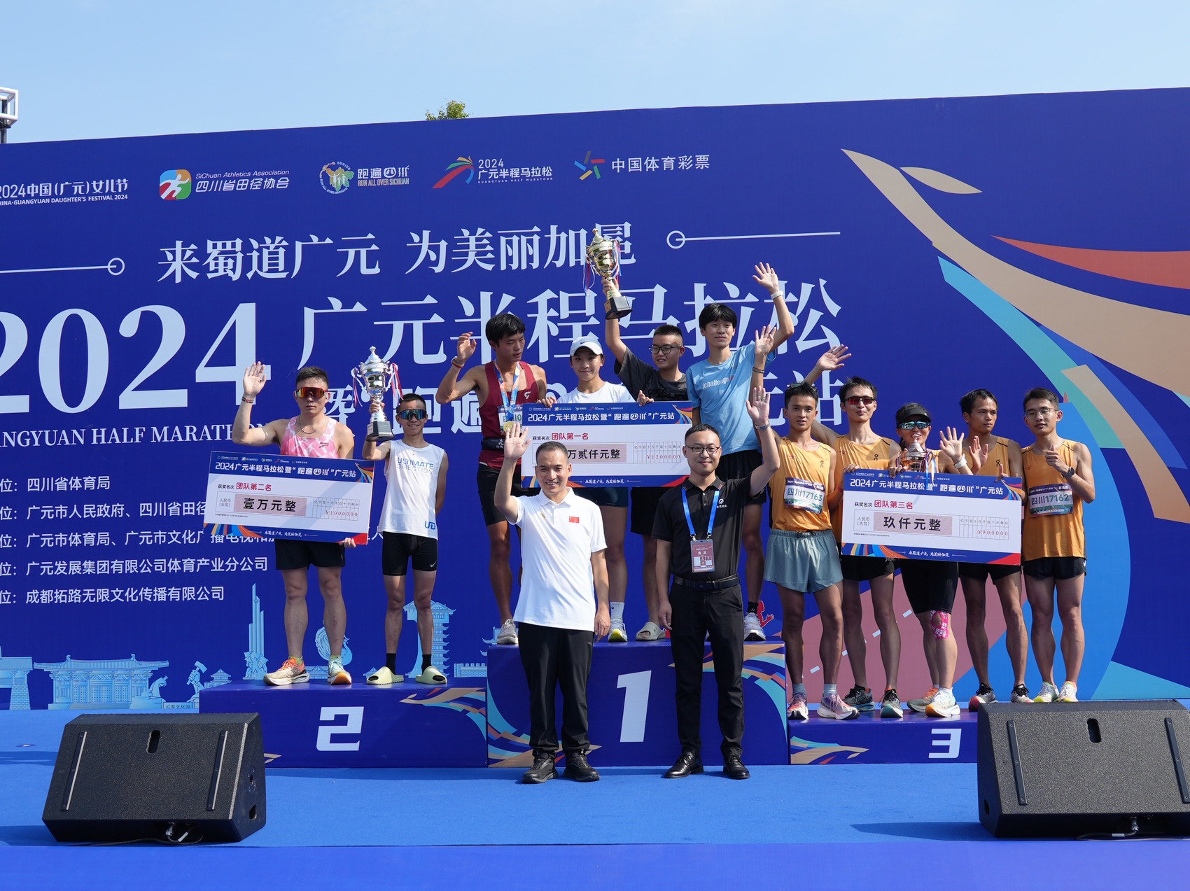 广元半程马拉松赛事团体前三名。王鹏 摄