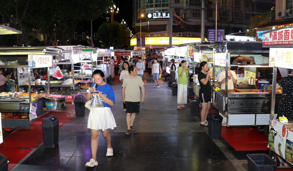 达州市开江县橄榄广场临时摊区烟火气息浓郁。(达州日报记者 何龙 摄)