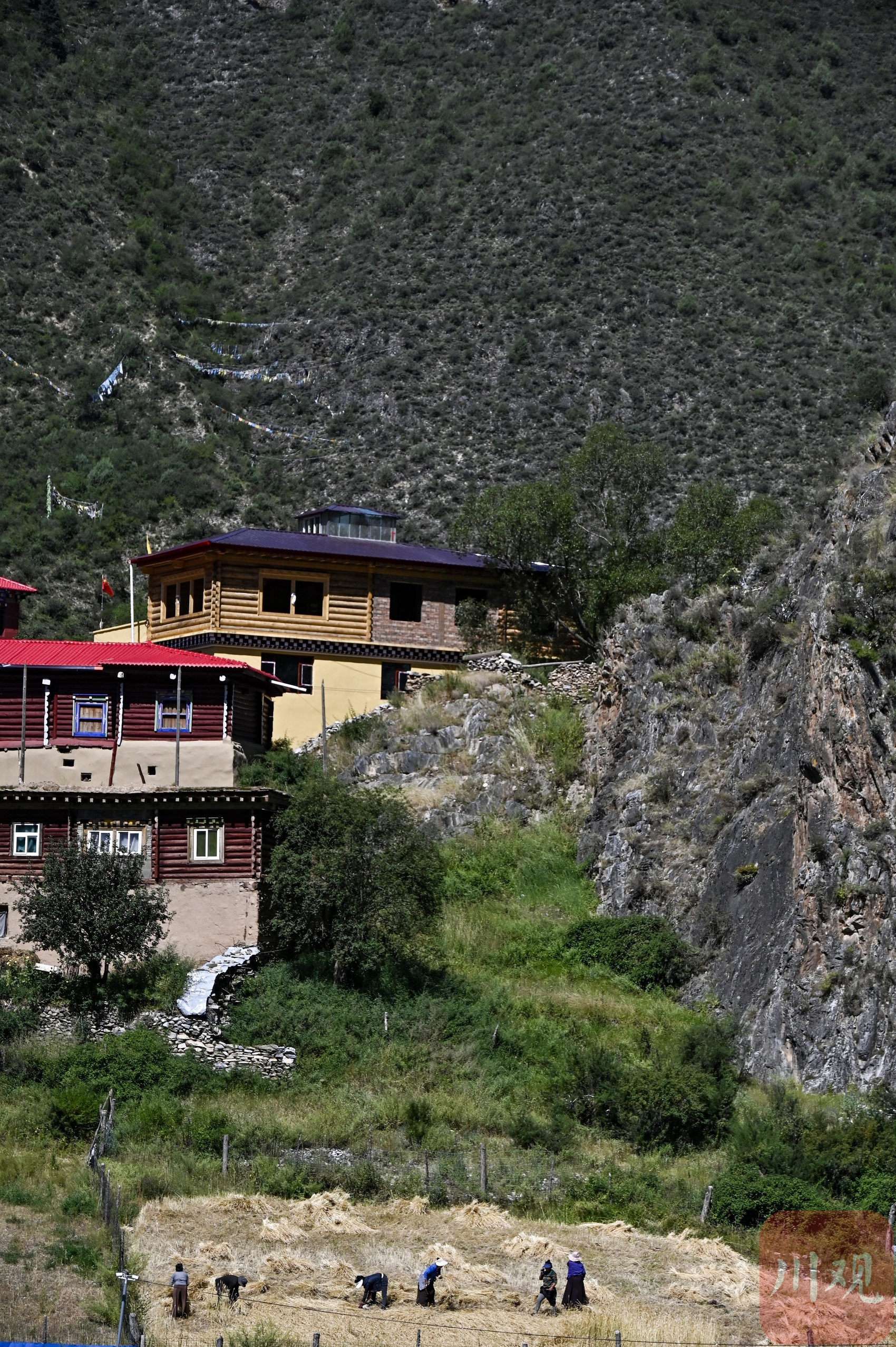 岗托村的村民正在收割青稞。